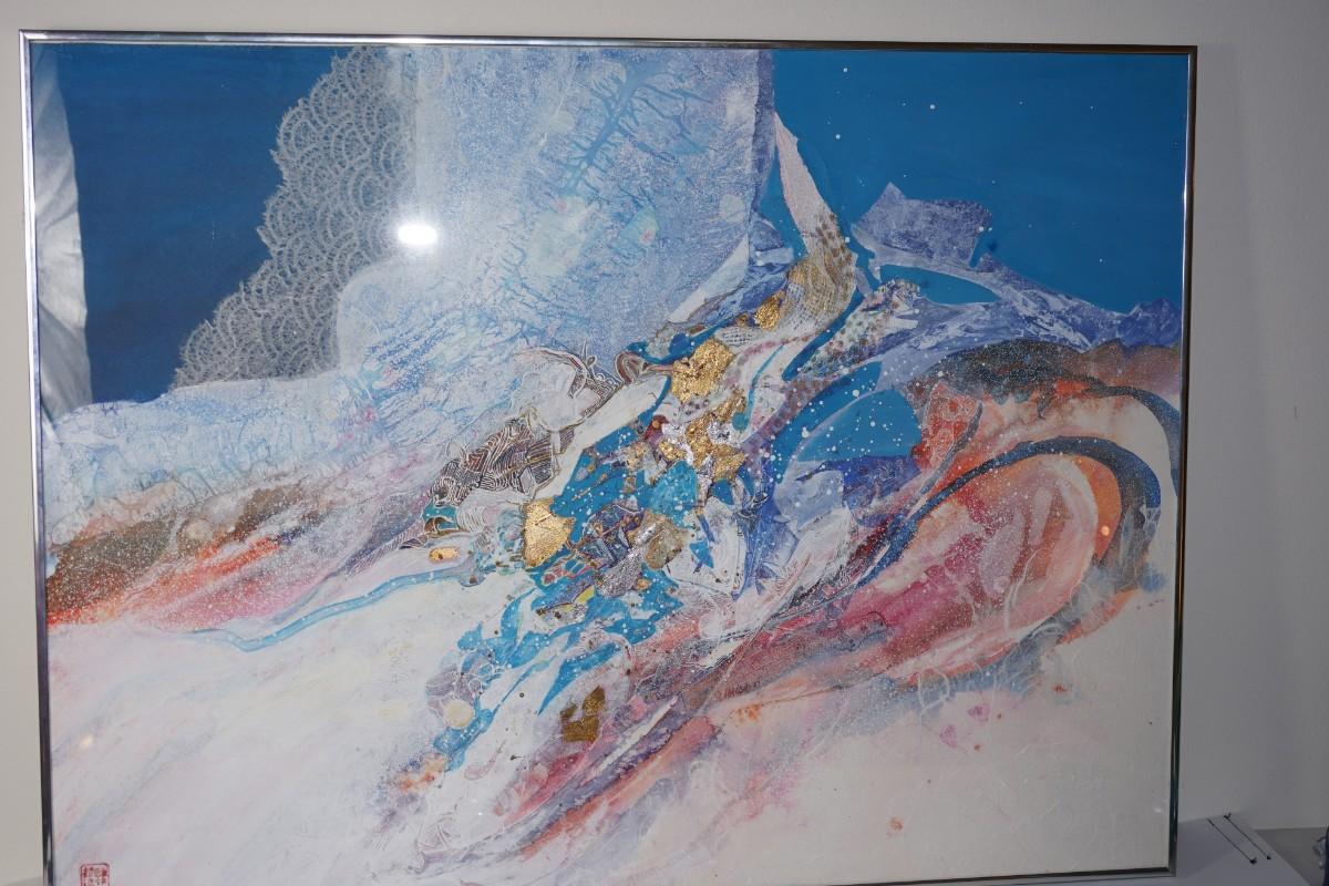 Textured paints and paperwork.