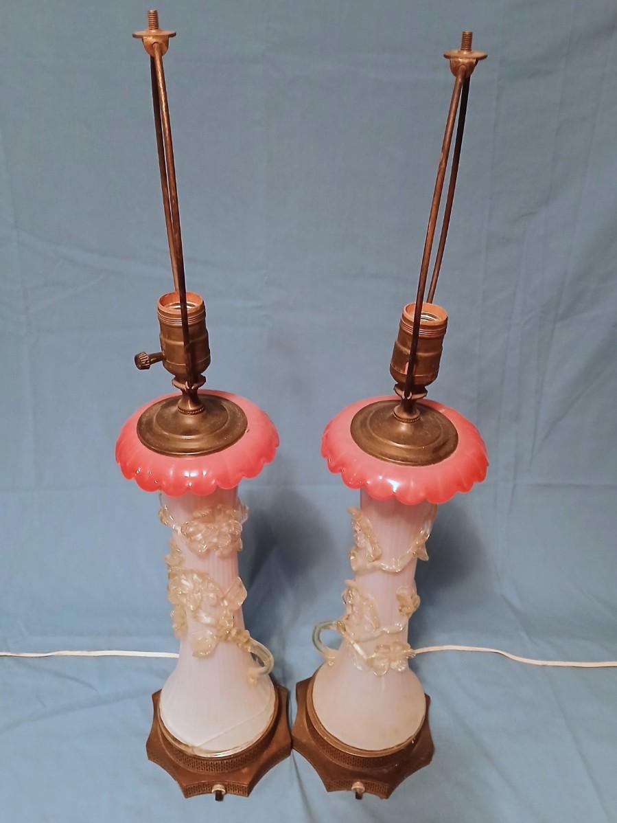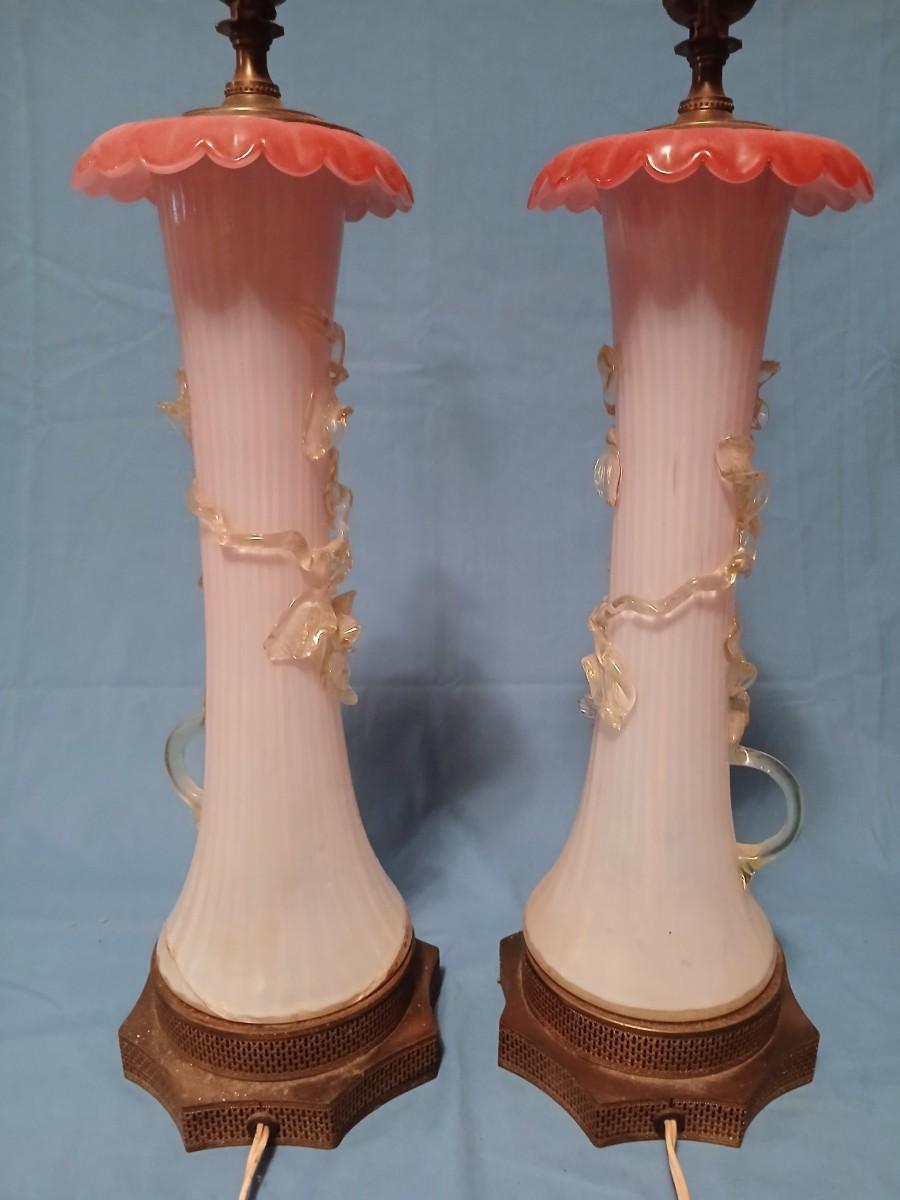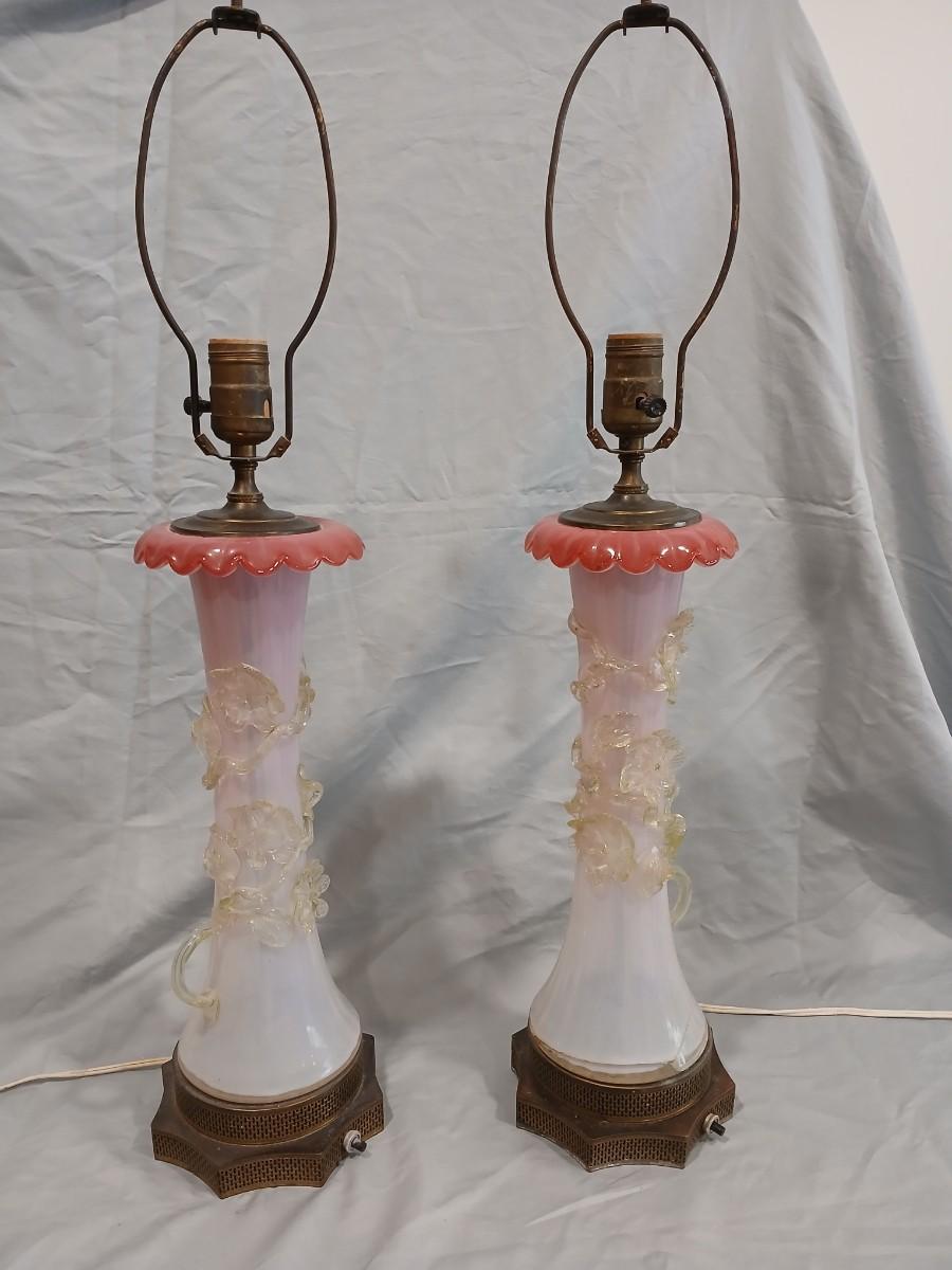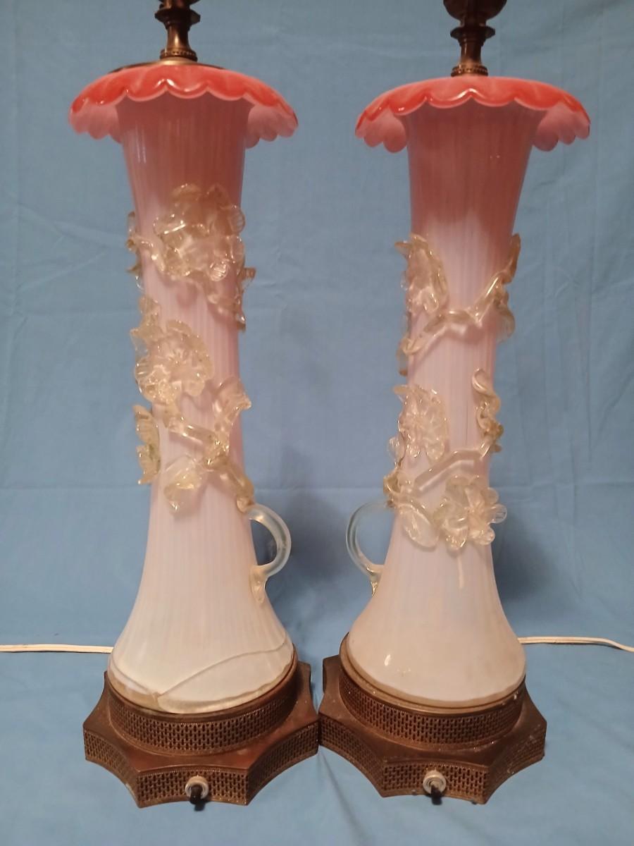Rare Hollywood Regency Venetian Glass Lamps (pair)