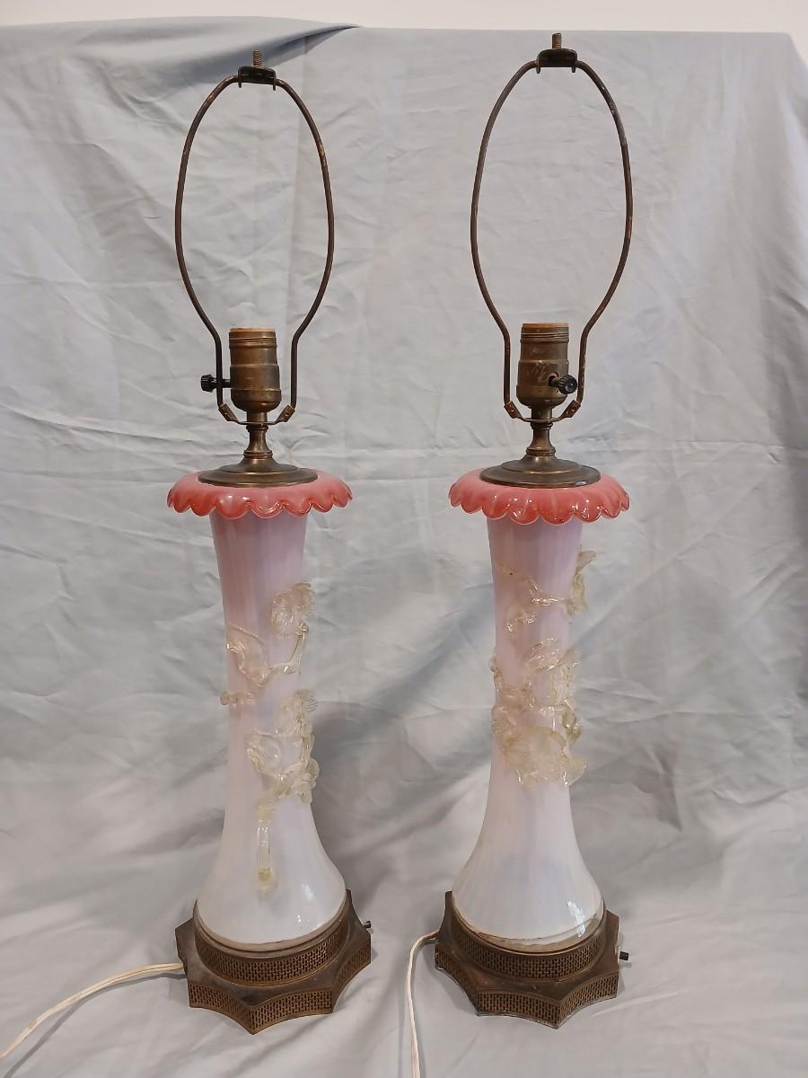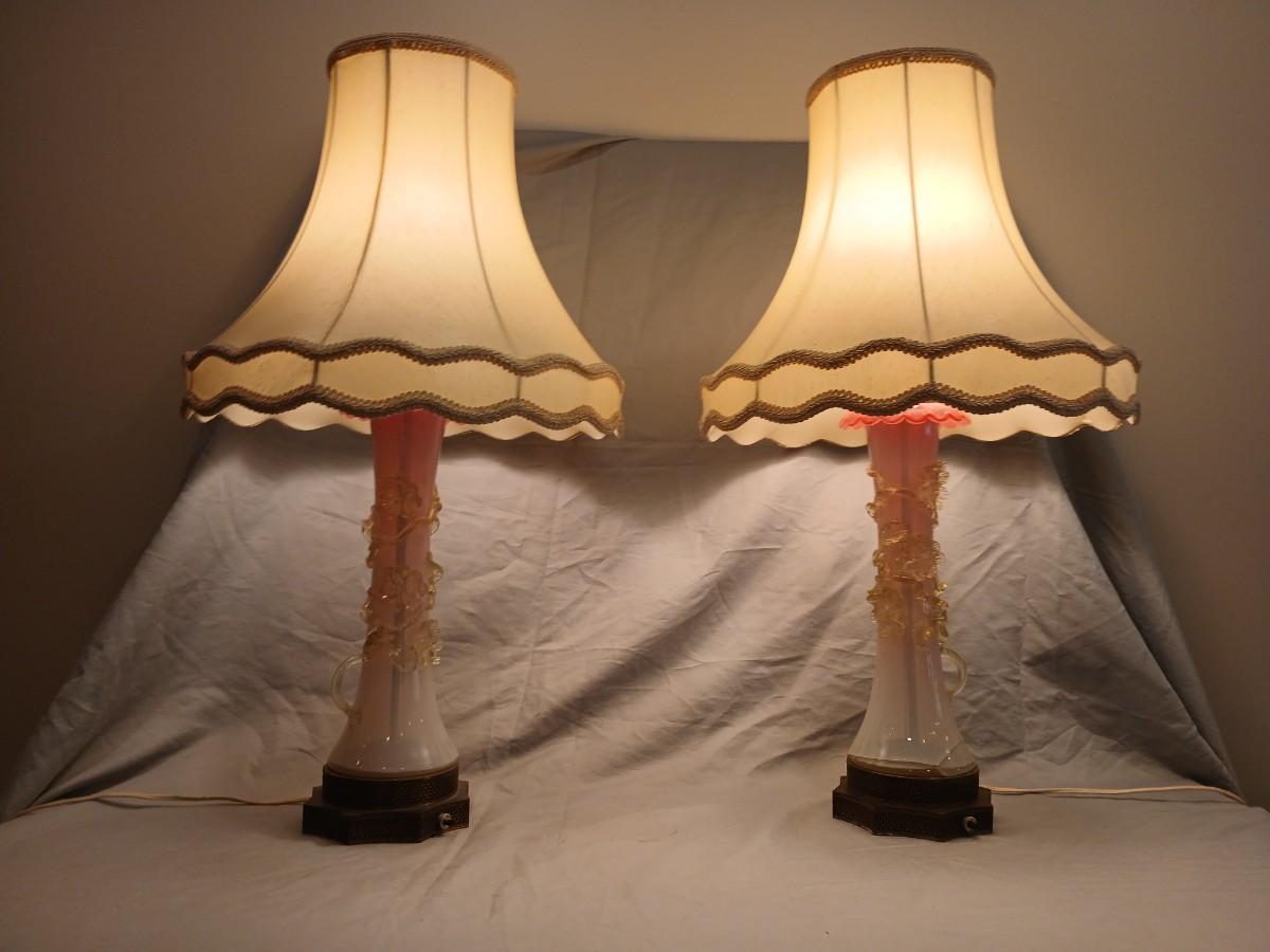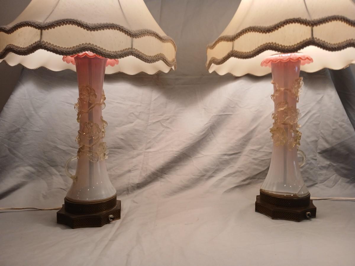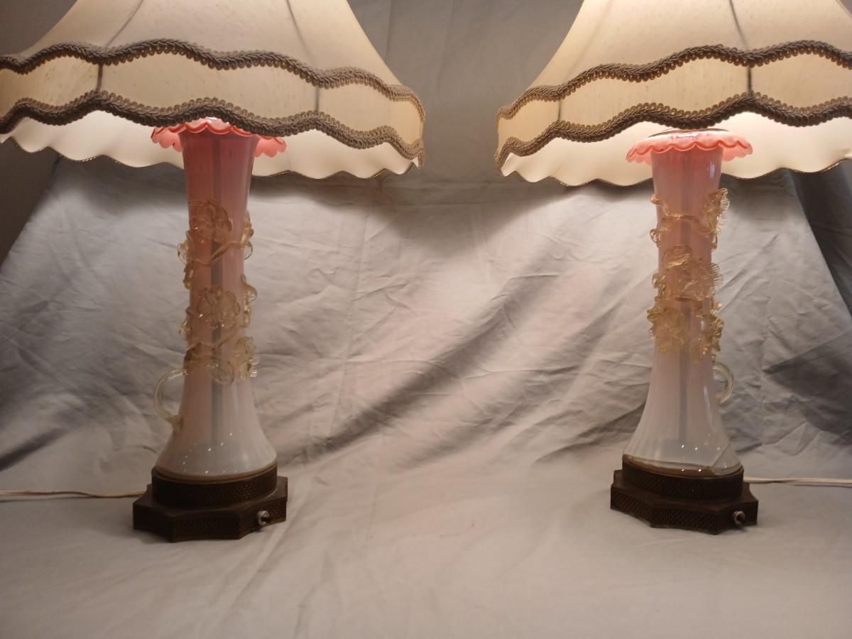 Rare Hollywood Regency Venetian Glass Lamps (pair)