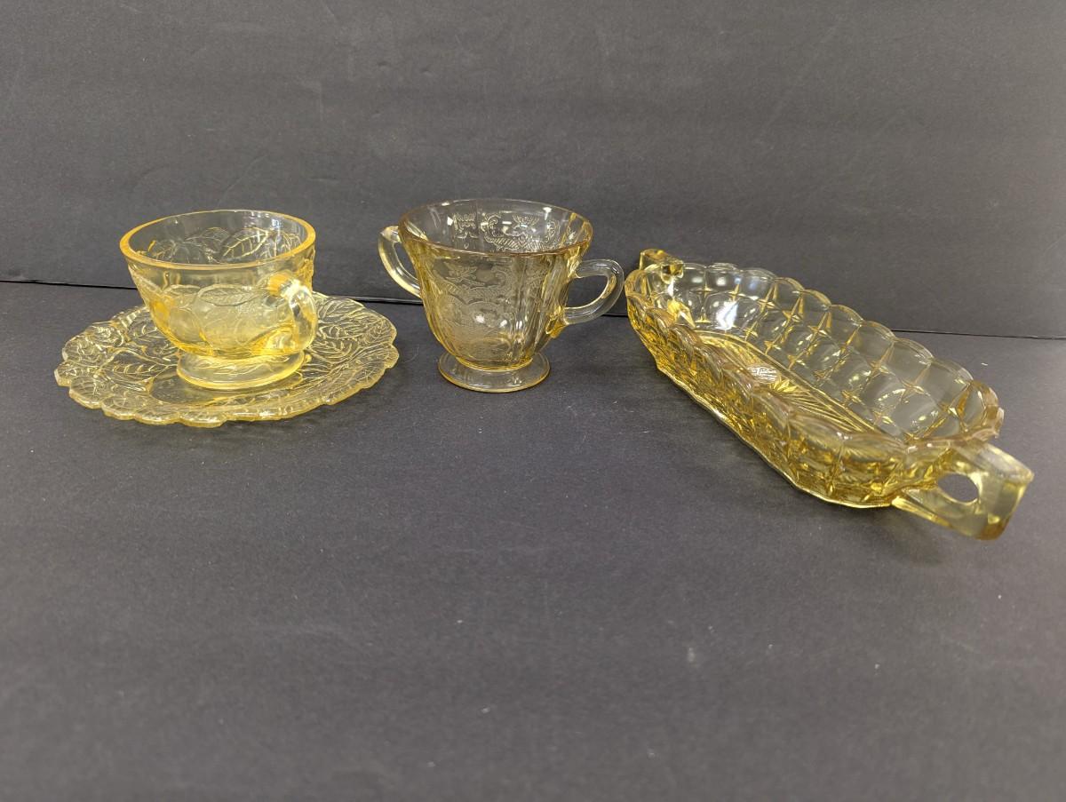 Exclusive Tiara Yellow Amber Depression Glass