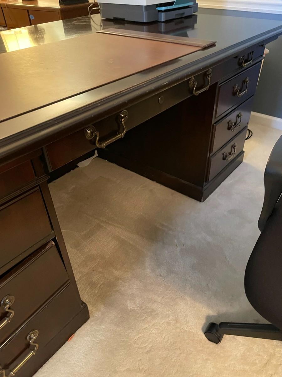 Executive Desk with Brass Pulls. 77"L x 42"W x 30"H