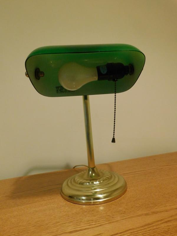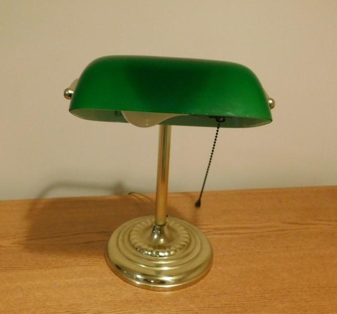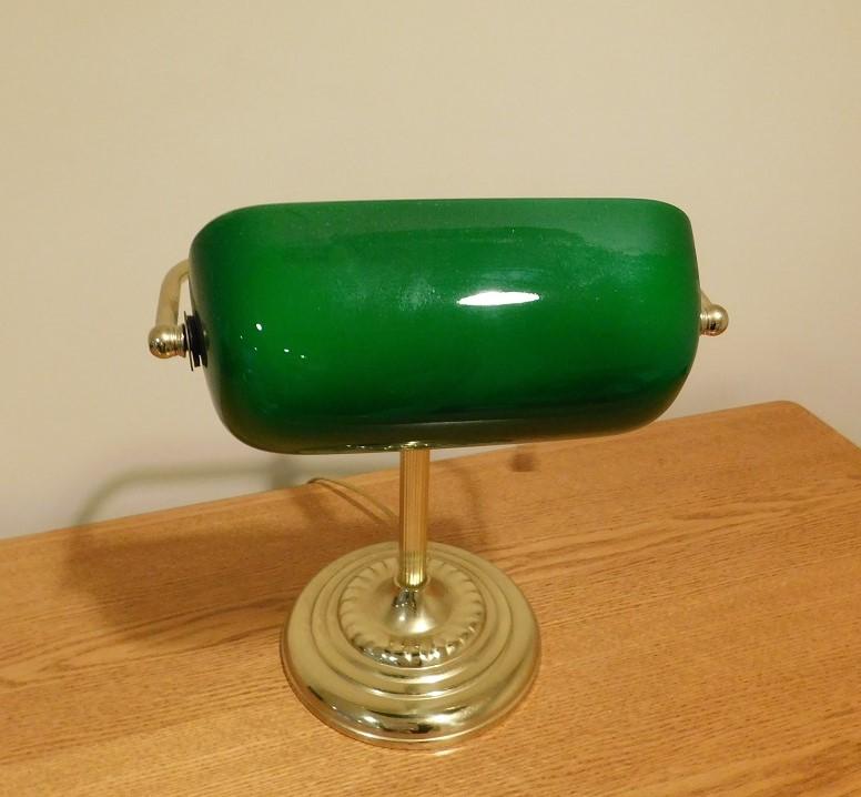 Executive Green Glass and Brass Desk Lamp