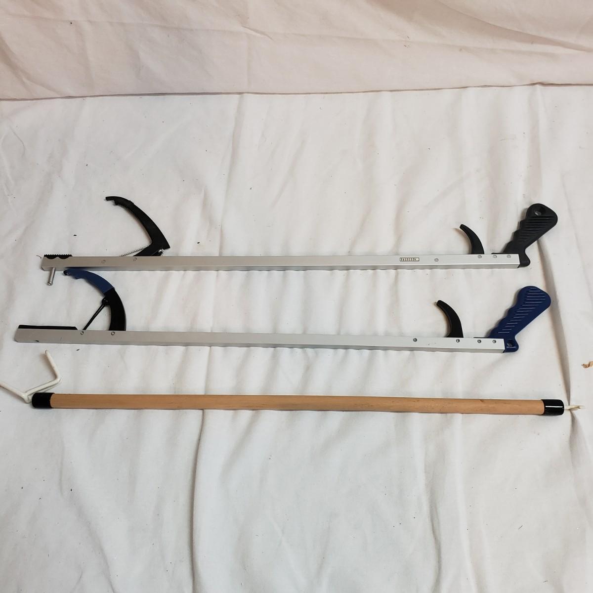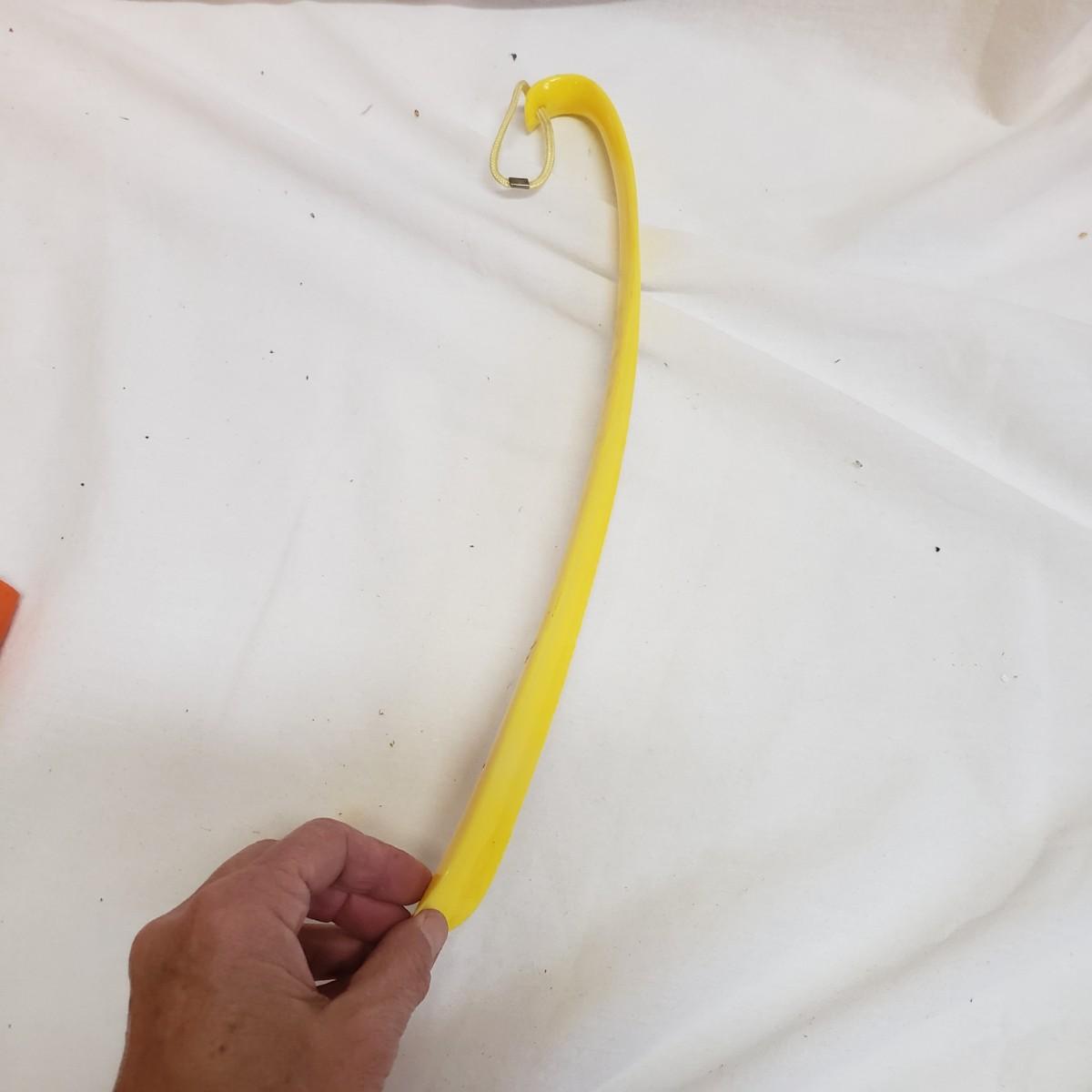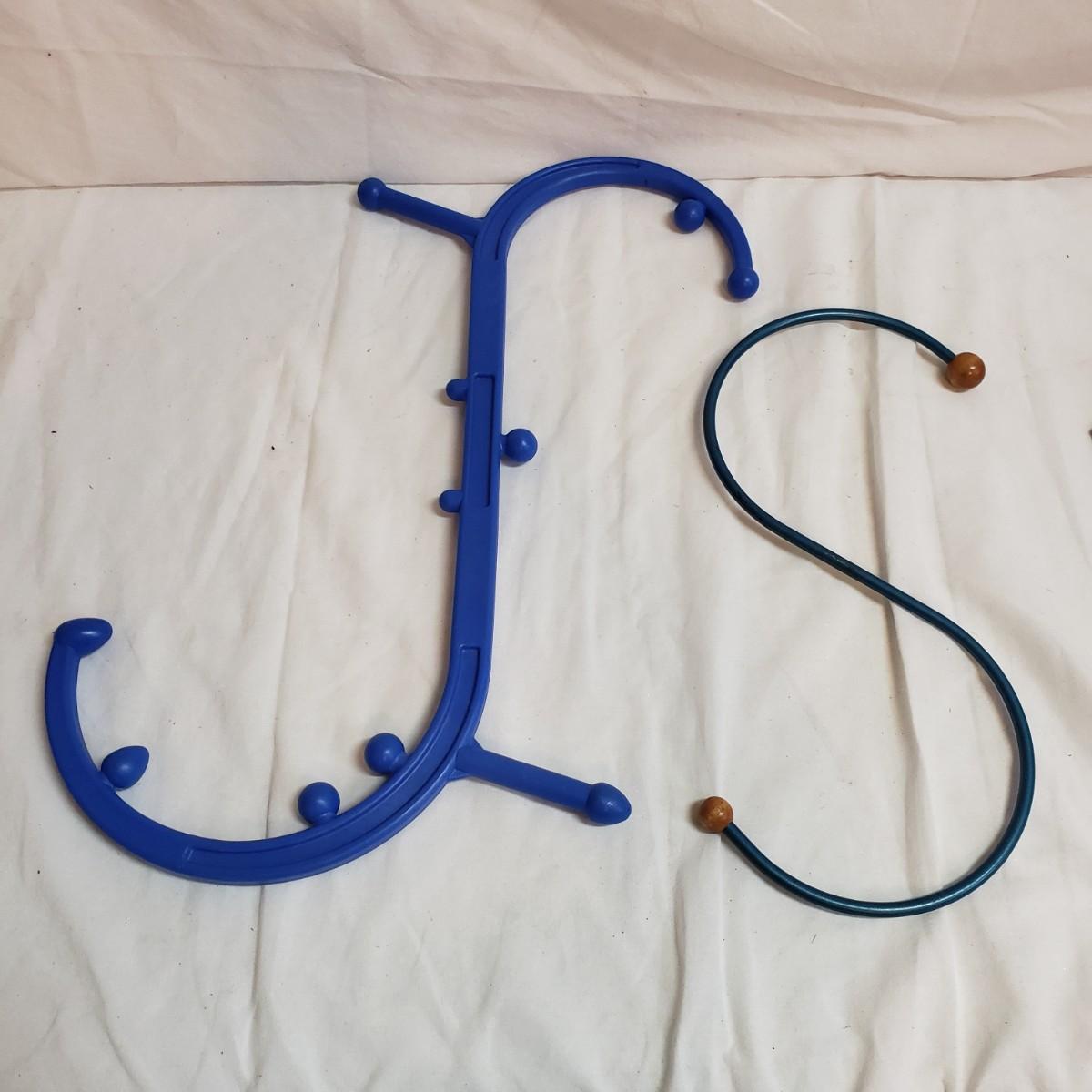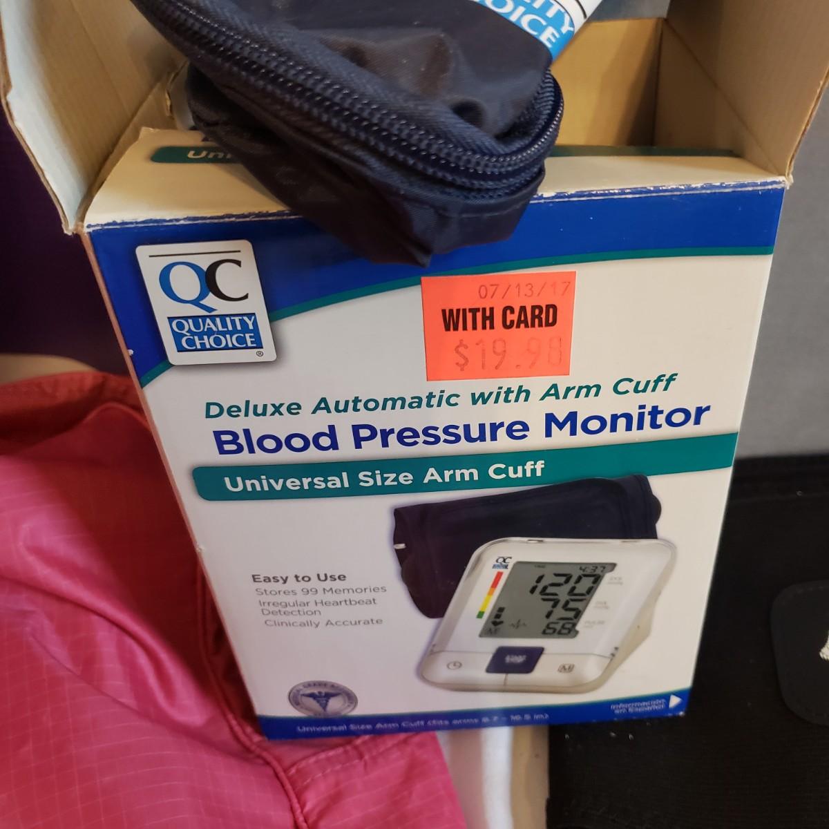 This lot will help in many ways! There are a pair of five-pound ankle weights that appear to be hardly used. The red rubber hot water bottle is just what your body ordered! The Revix cooling packs can velcro to the spot you need it. The QC blood pressure cuff powers on when tested. The are three grey the Original Lumbar Rolls measuring 4" x 11". A purple yoga mat that has some worn marks but is still plush. The grey velvet wedge pad measures 14" x 14" x 3" at its highest end. There are two back support braces, one is size large and the other by Mueller does not have a tag. There are also three canes: one with a base and the other two with sturdy rubber knobs at the bottom. All are adjustable. The Body Back Buddy is great for getting knots out of your back! There are multiple bands of various strengths and sizes.