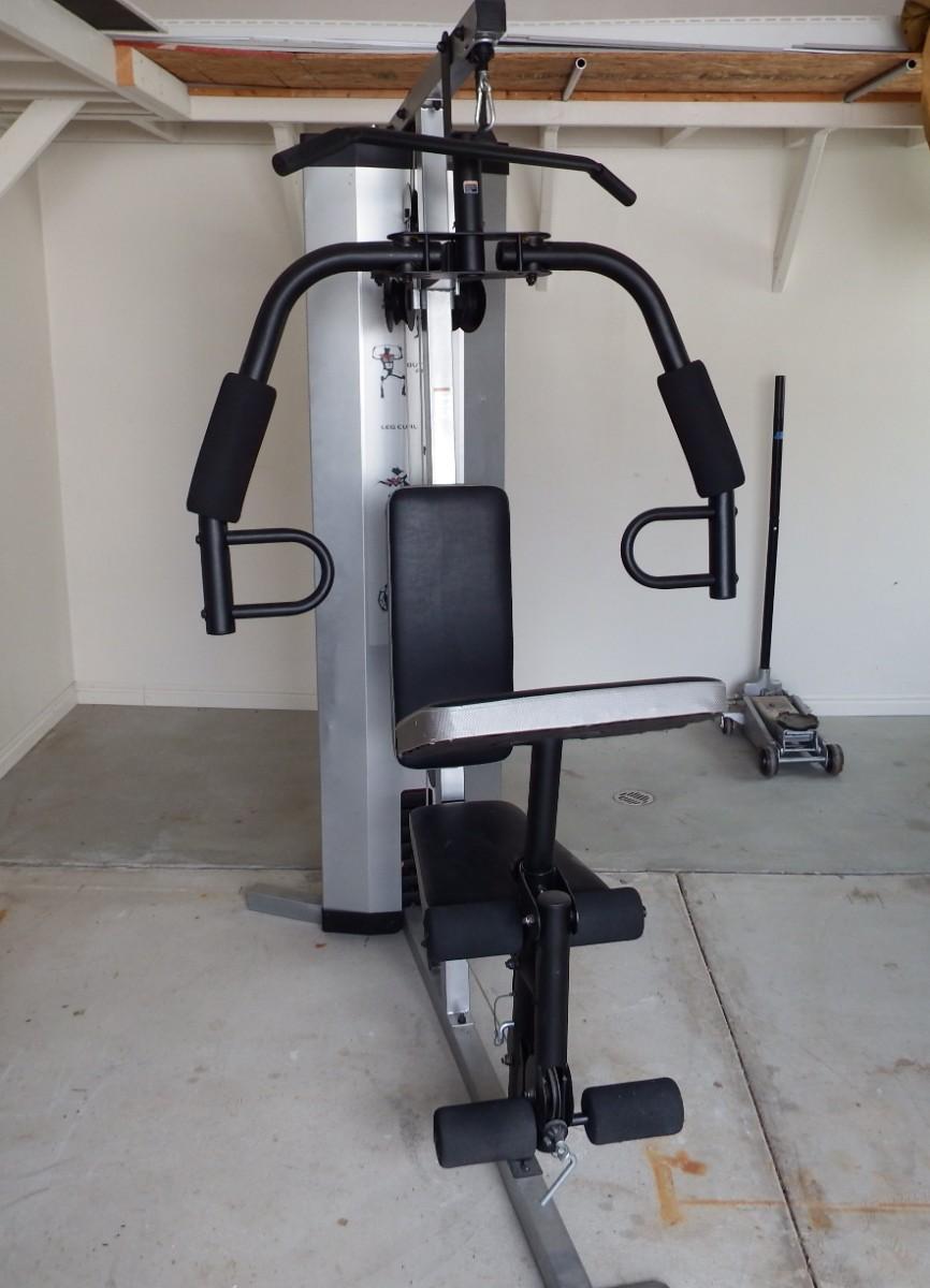 Different exercising options are shown behind the seat. Lots of different ways to use the machine. 76 inches tall.