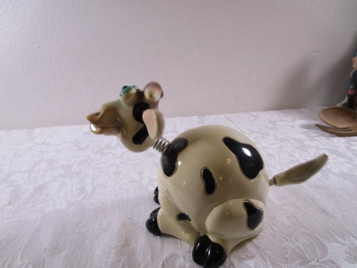 Head, tail & ears are on springs, 6-1/2" tall x 10" long