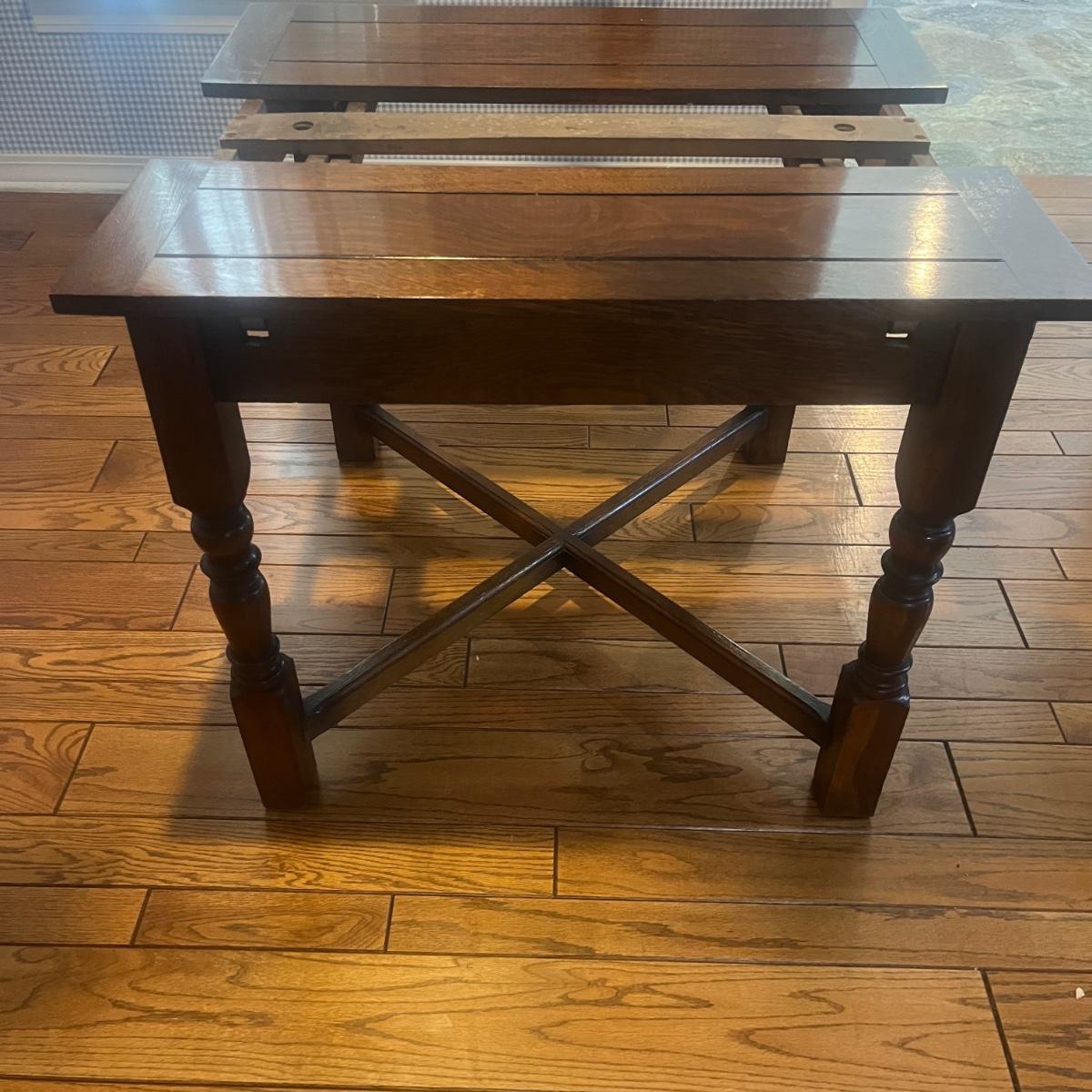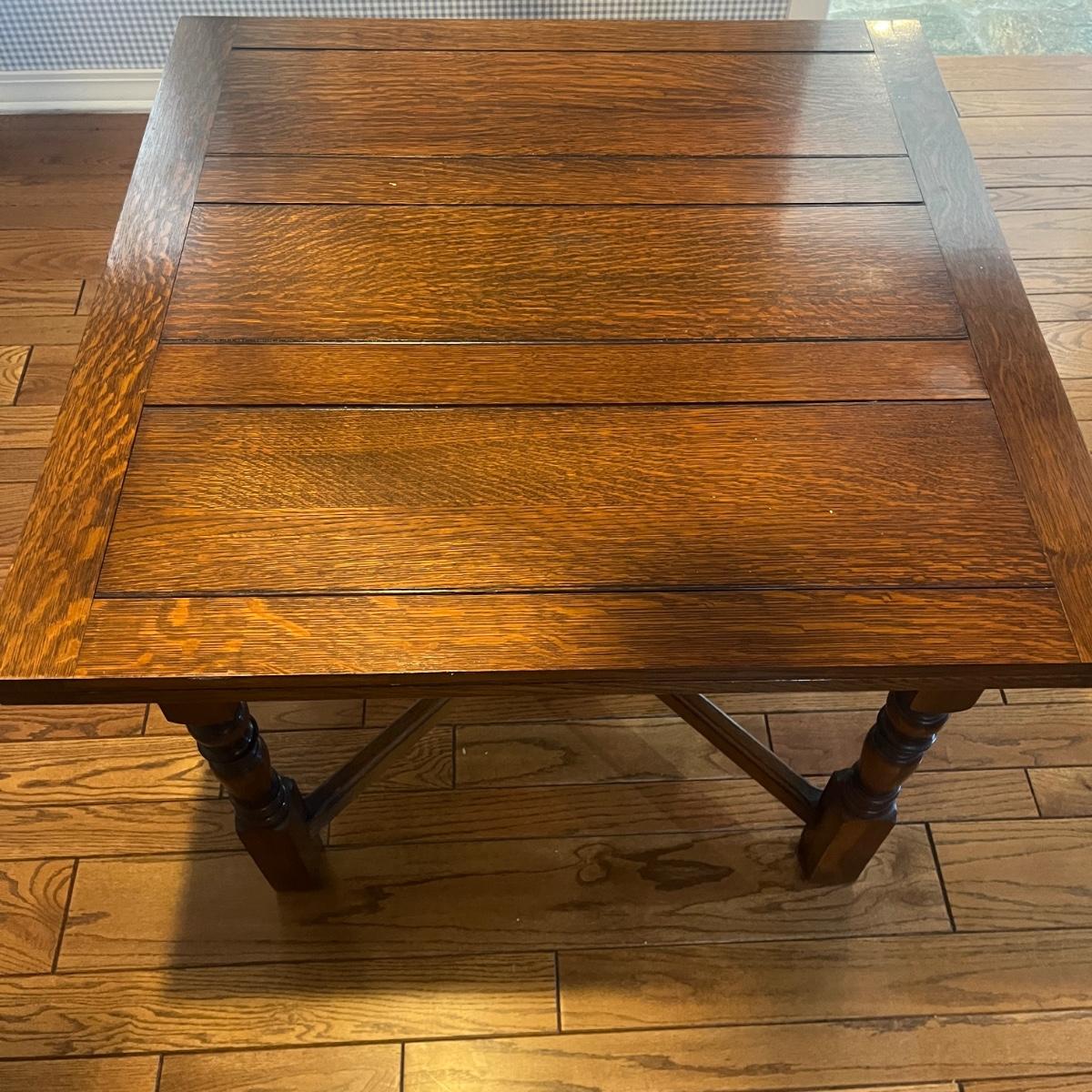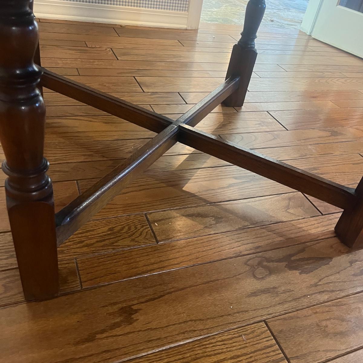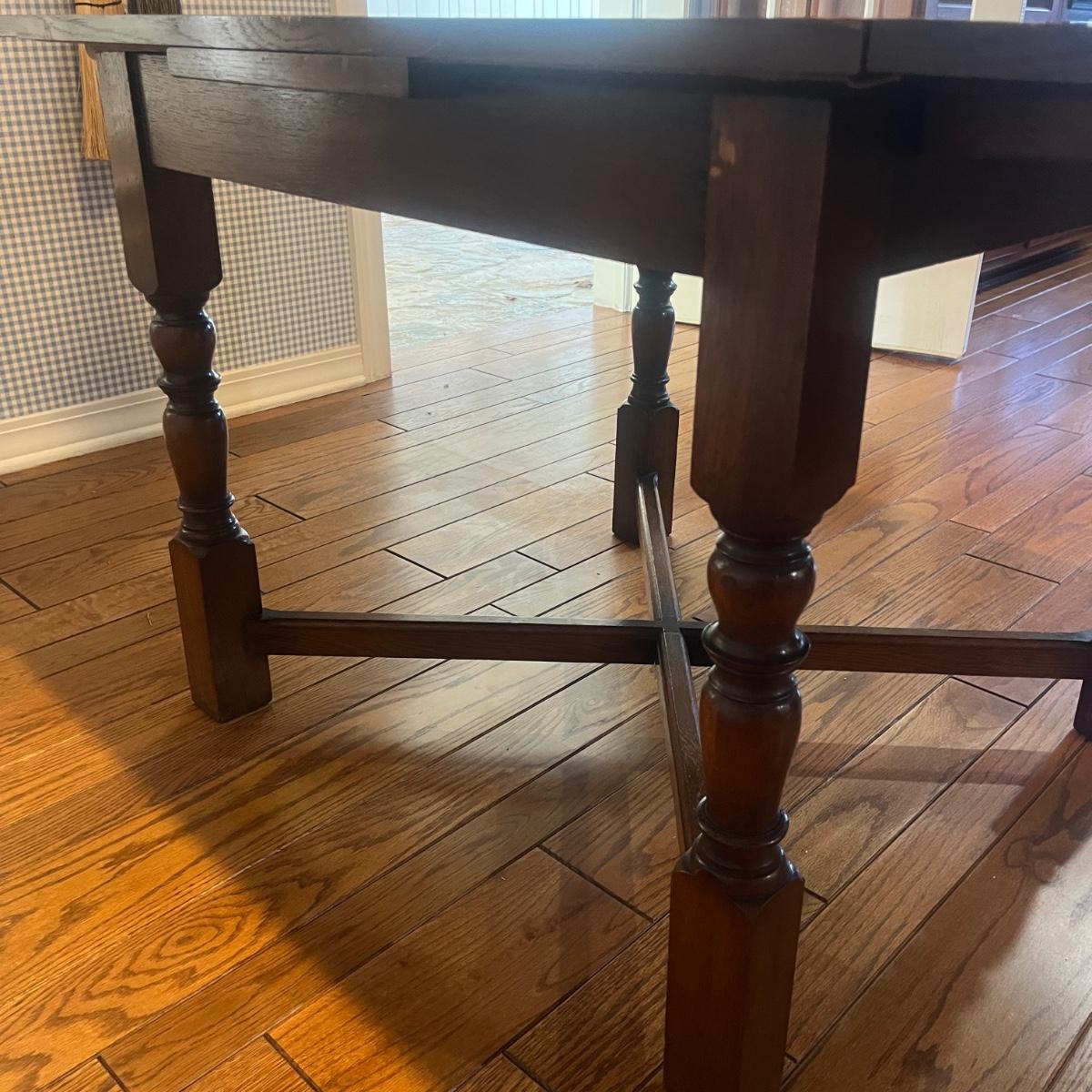 Lot includes an expandable solid wood dining table that measures 35.5” x 35.5” x 30”H when closed and 35.5” x 59” x 30”H when expanded.