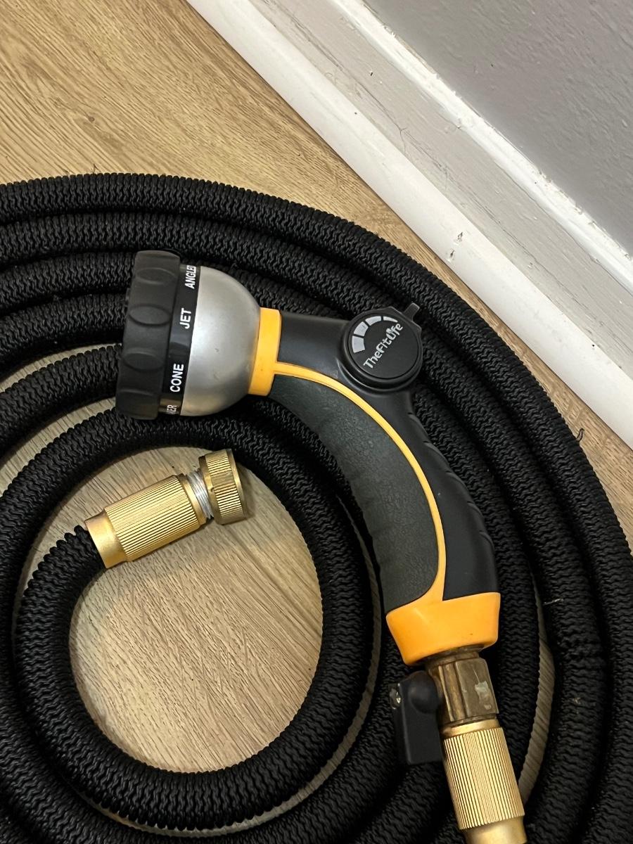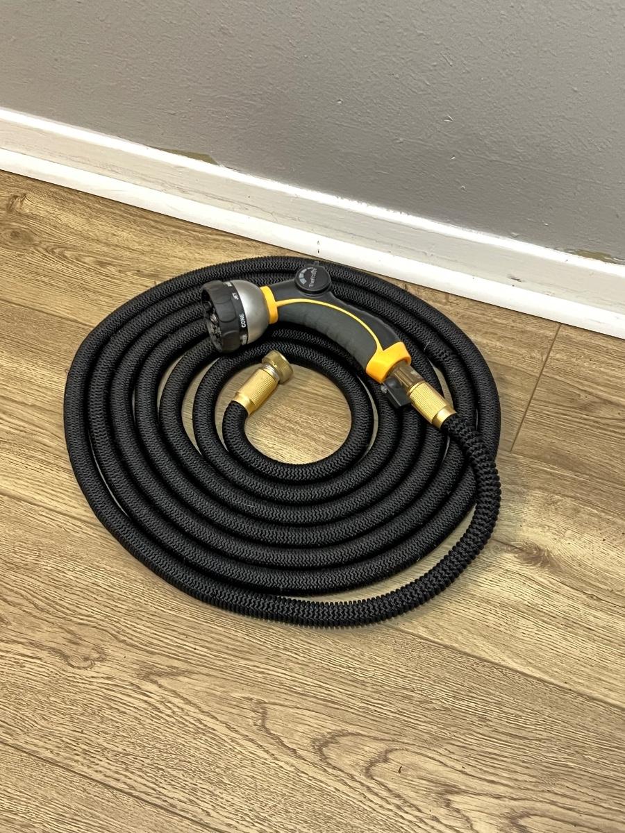 Sold as is, not sure of the length when expanded ~ Hose = 17 ft without water. Client seems to think it’s a 25Ft hose when expanded, but not entirely sure