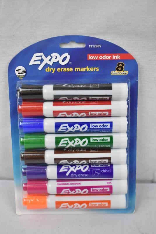 EXPO Low Odor Dry Erase Markers, Chisel Tip, Assorted Colors, 8 Count & 2-pack Microfiber Eraser Cloths - New