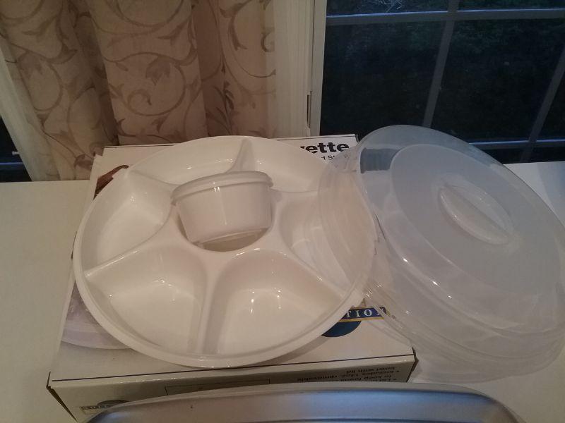 Conair single expresso maker & Vegetable serving set with lid, plastic.