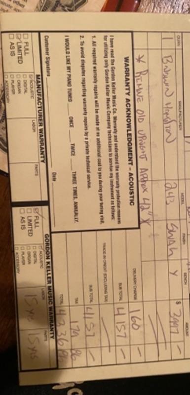 Has the famous Baldwin pinblock, Baldwin Hammers, Synchro-tone bass strings, and all the other exclusive Baldwin features. It was regularly cared for and tuned until a few years ago.