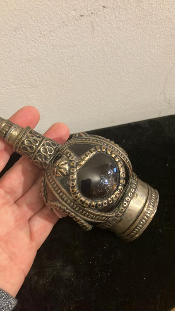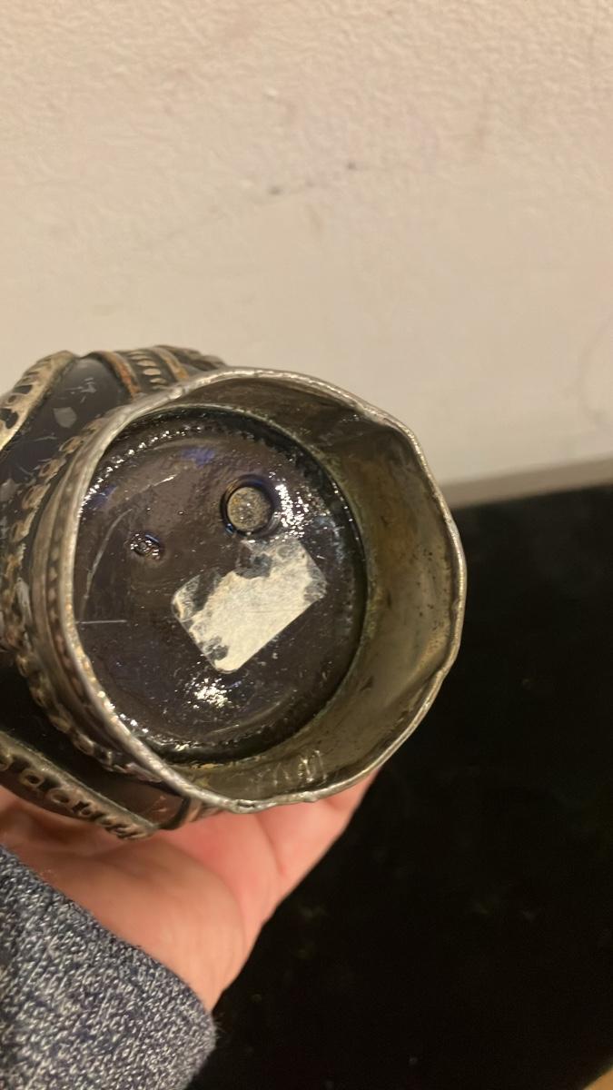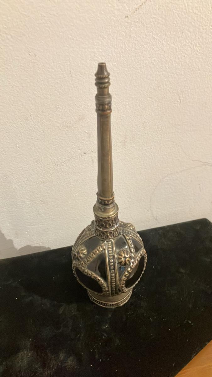 Step back into the opulent world of Victorian elegance with this stunning antique perfume bottle, a true gem for collectors of vintage vanity accessories and Art Nouveau glassware. Crafted in the late 19th or early 20th century, this piece features a vibrant cobalt blue glass base—deeply hued and flawless, with subtle facets that catch the light like a sapphire jewel. The body measures a graceful 8.5 inches in total height, perfect for elegant display on a dressing table or mantel.