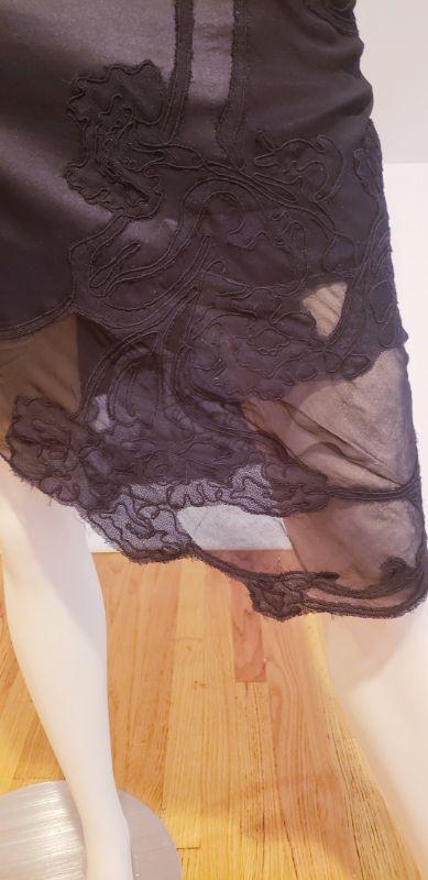Amazingly more beautiful in real lif no pictures can capture this one. by famous English Couture designer Karen Millen. Silk Ricamo Applique raw e dge wiggle dress/sort of a soutache. Great condition.