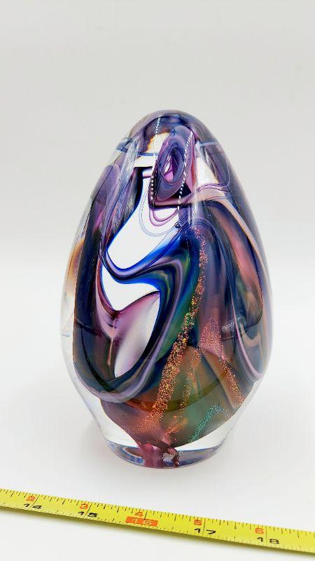 EXQUISITE LARGE HAND BLOWN GLASS EGG - SIGNED