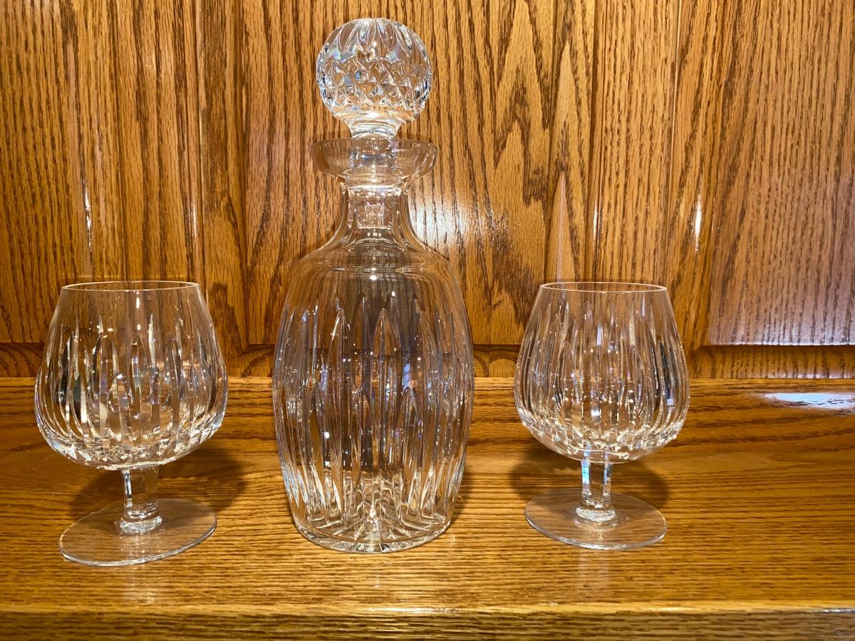 EXQUISITE LEAD CRYSTAL WATERFORD DECANTER AND COCKTAIL GLASSES