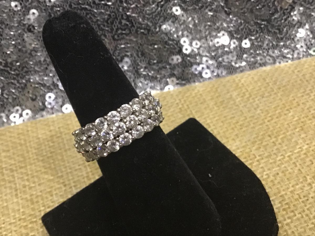 Exquisite Sterling Silver 925 HN Heng Ngai Crystal Wide Band signed