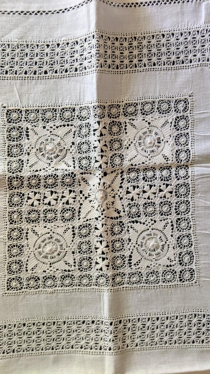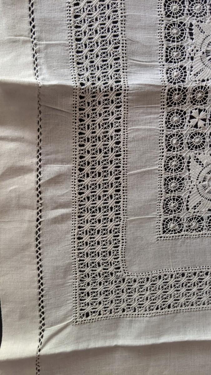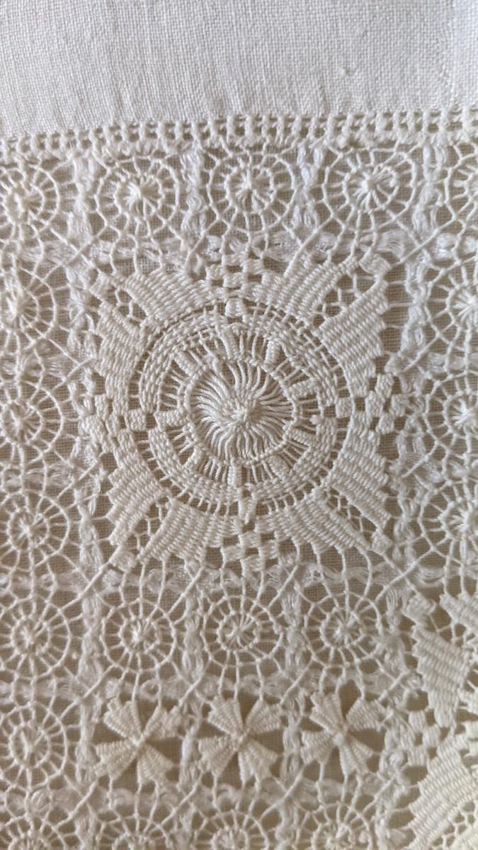 Exquisite Teneriffe lace on linen Antique Victorian needlework