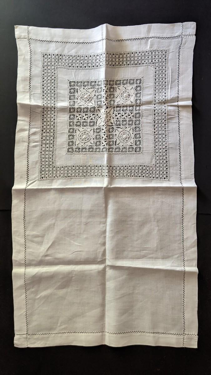 This may have been a piece to put over the back of a chair. I think with a little stitching, it would be a beautiful pillow for your boudoir! I just can't get over the amount of needle lace work in this piece. Just fabulous! Hours and hours of hand work.