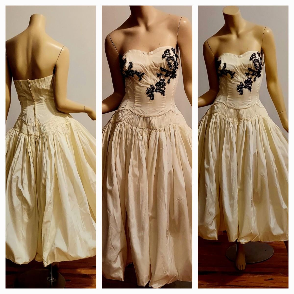 Stunning Shanting and Black French lace Strapless Ball Gown with Double Tulle Attached Crinoline