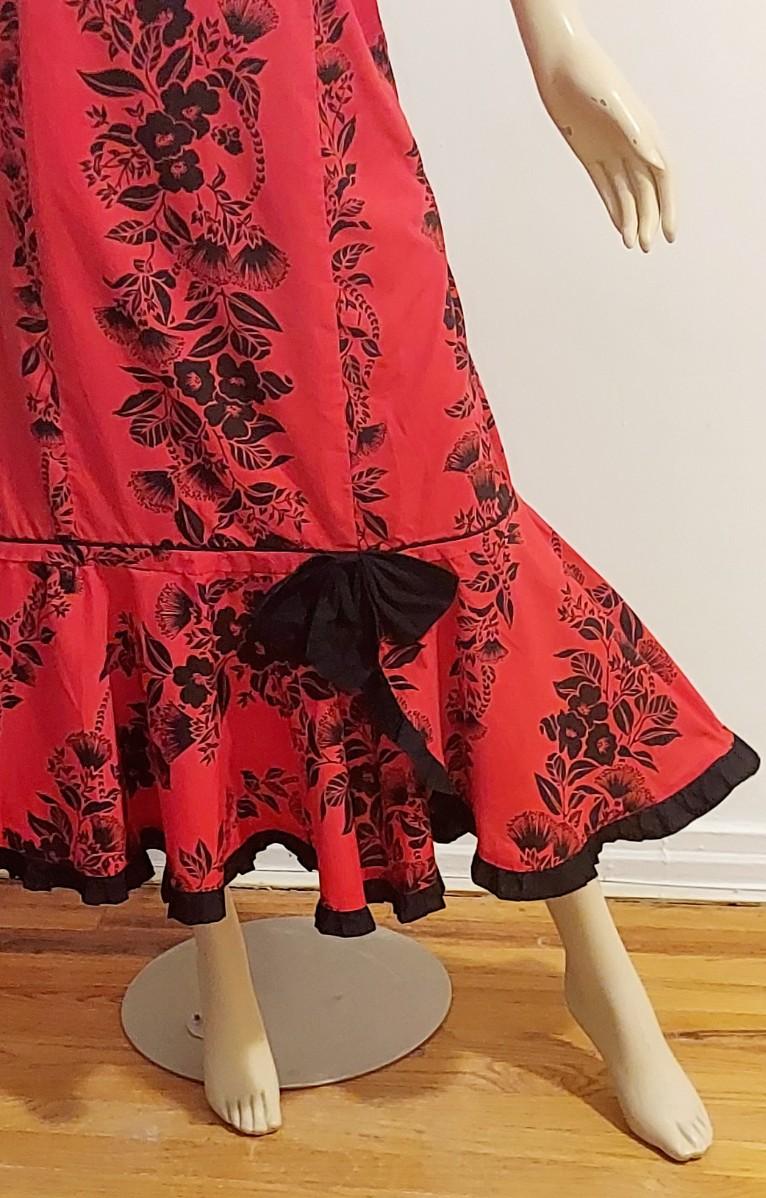 Stunning Hawaiian Maxi lipstick Red dress ,Ruffled Hem with Kitten Bow. Puffed sleeves.Great print and Design