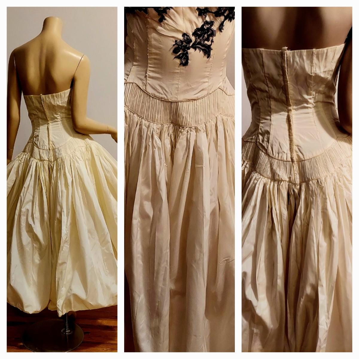 Stunning Shanting and Black French lace Strapless Ball Gown with Double Tulle Attached Crinoline