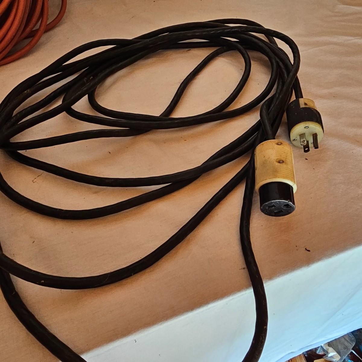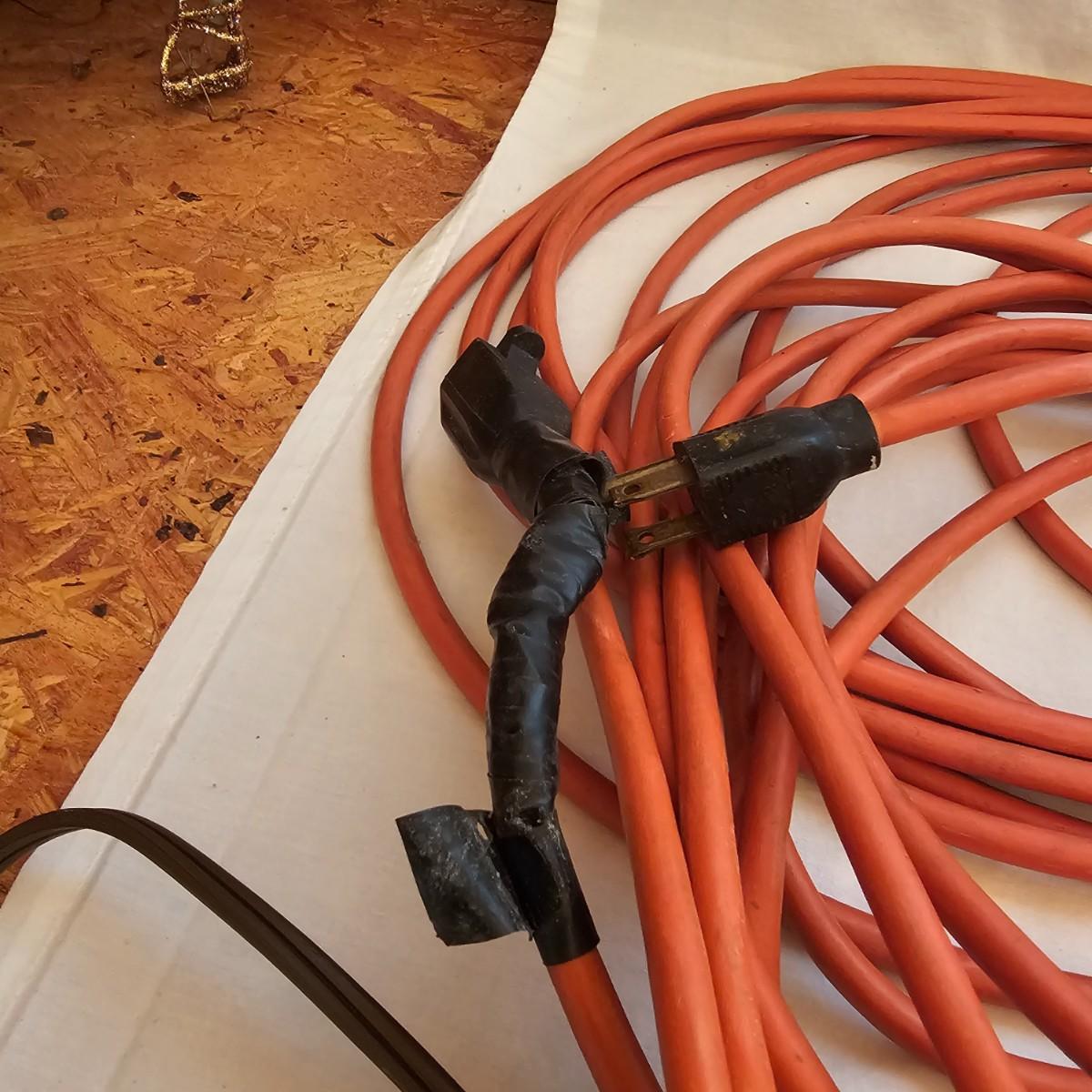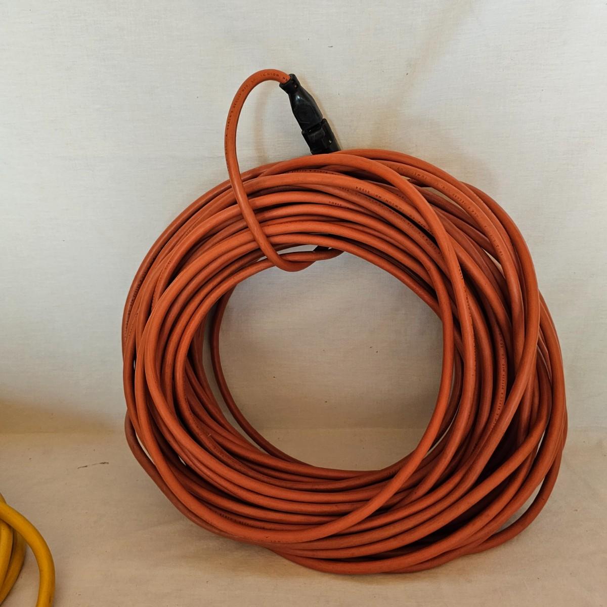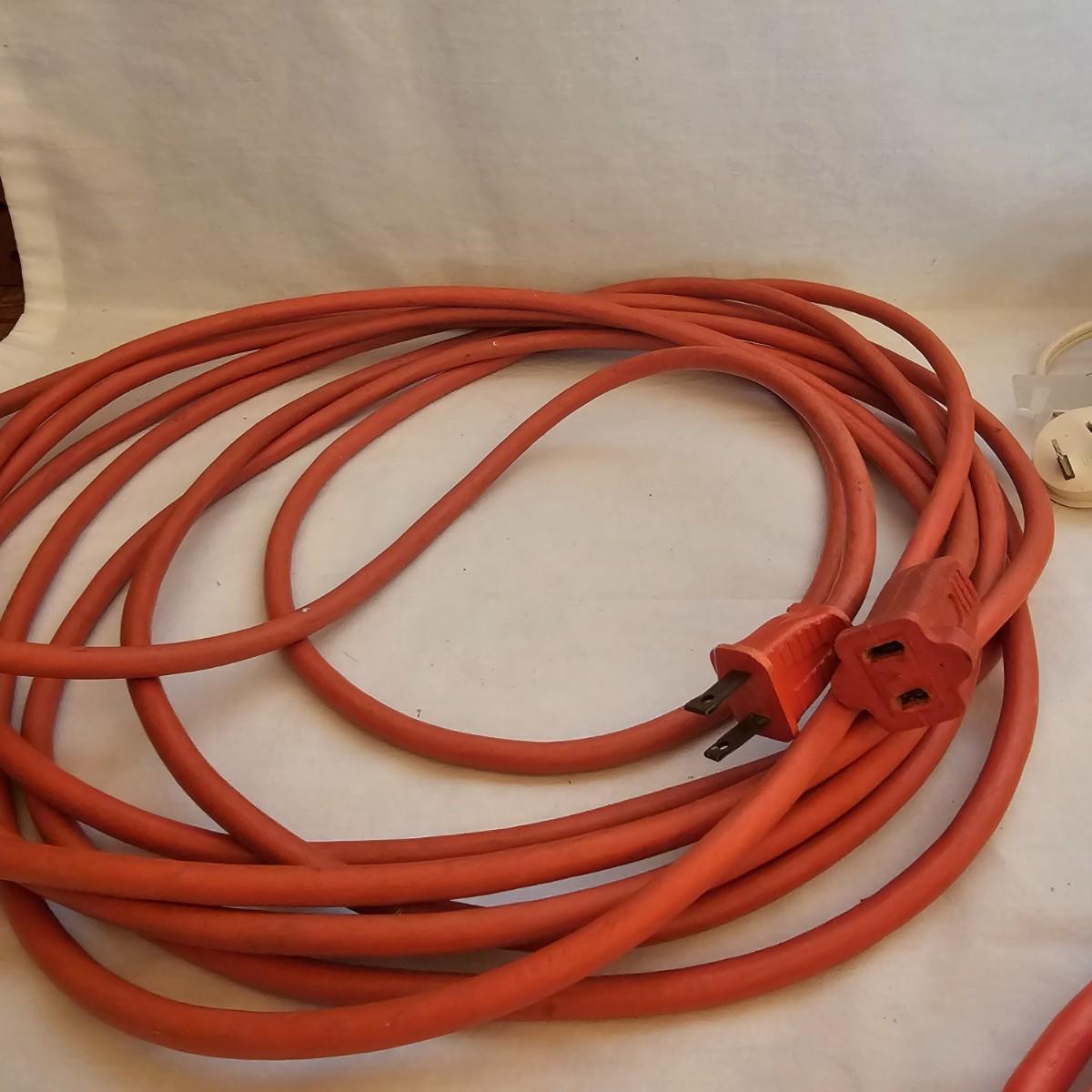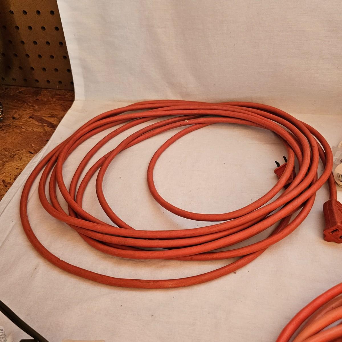 Several different types of extension cords. Six standard style short cords, five to six feet each. Some 15', 25', 40'. A 100' cord plus more. 13 items total, see photos for details. Please note one cord has end taped, may need to be fixed. Cords have not been tested. Local pickup only.