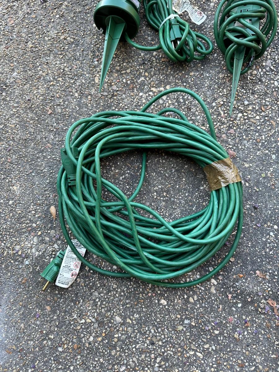 2 are outdoor power stakes for Christmas lights or outdoor lighting.