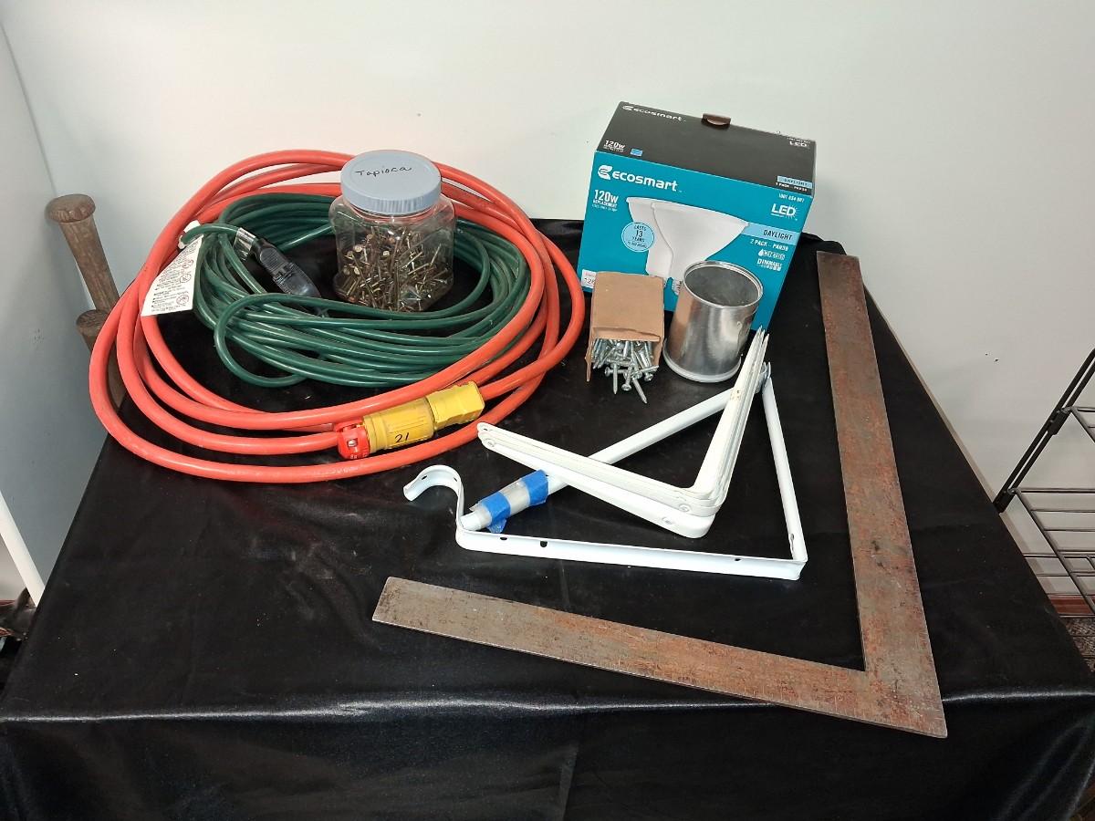 EXTENSION CORDS, SHELF BRACES, SPOT LIGHT BULBS AND HARDWARE