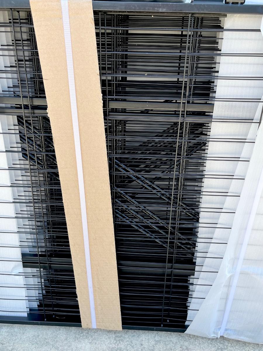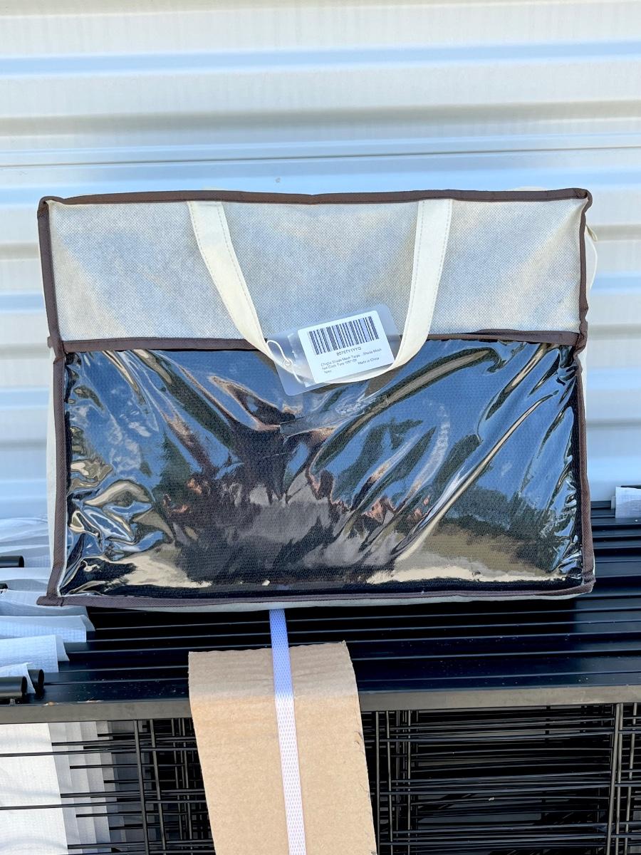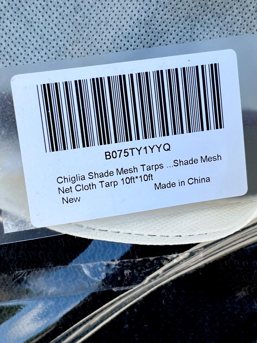 Shade tarp measures 10ft. x 10ft. ~ Includes 16 panels that measure 39” each ~ no package or brand found.