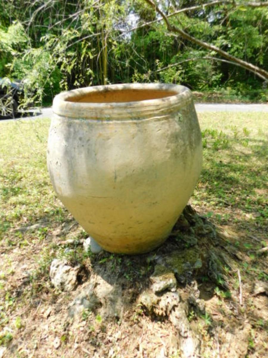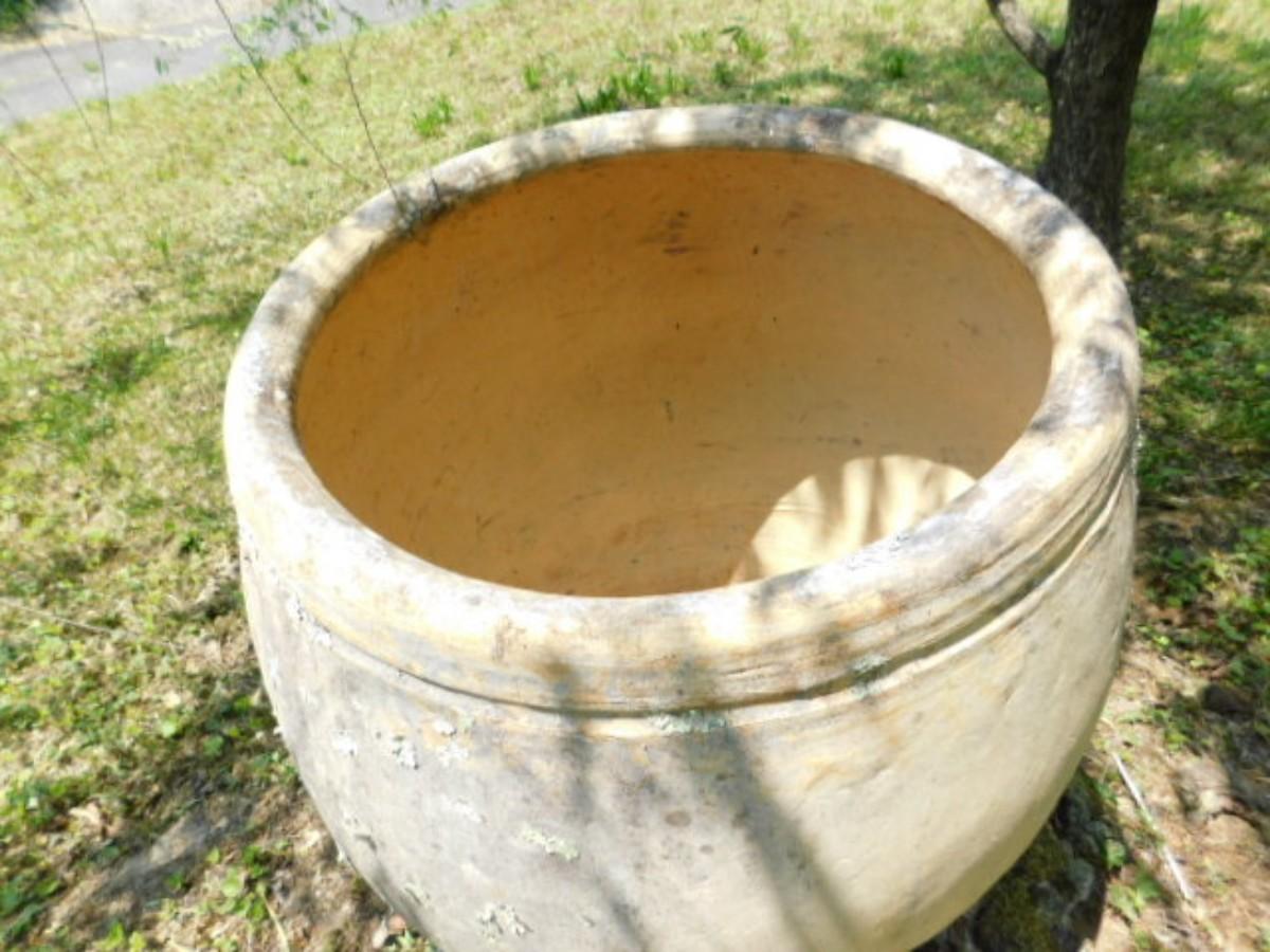 Extra Large Pottery Garden Planter Pot Will need to bring help removing from yard. Expect weathering and color fade.