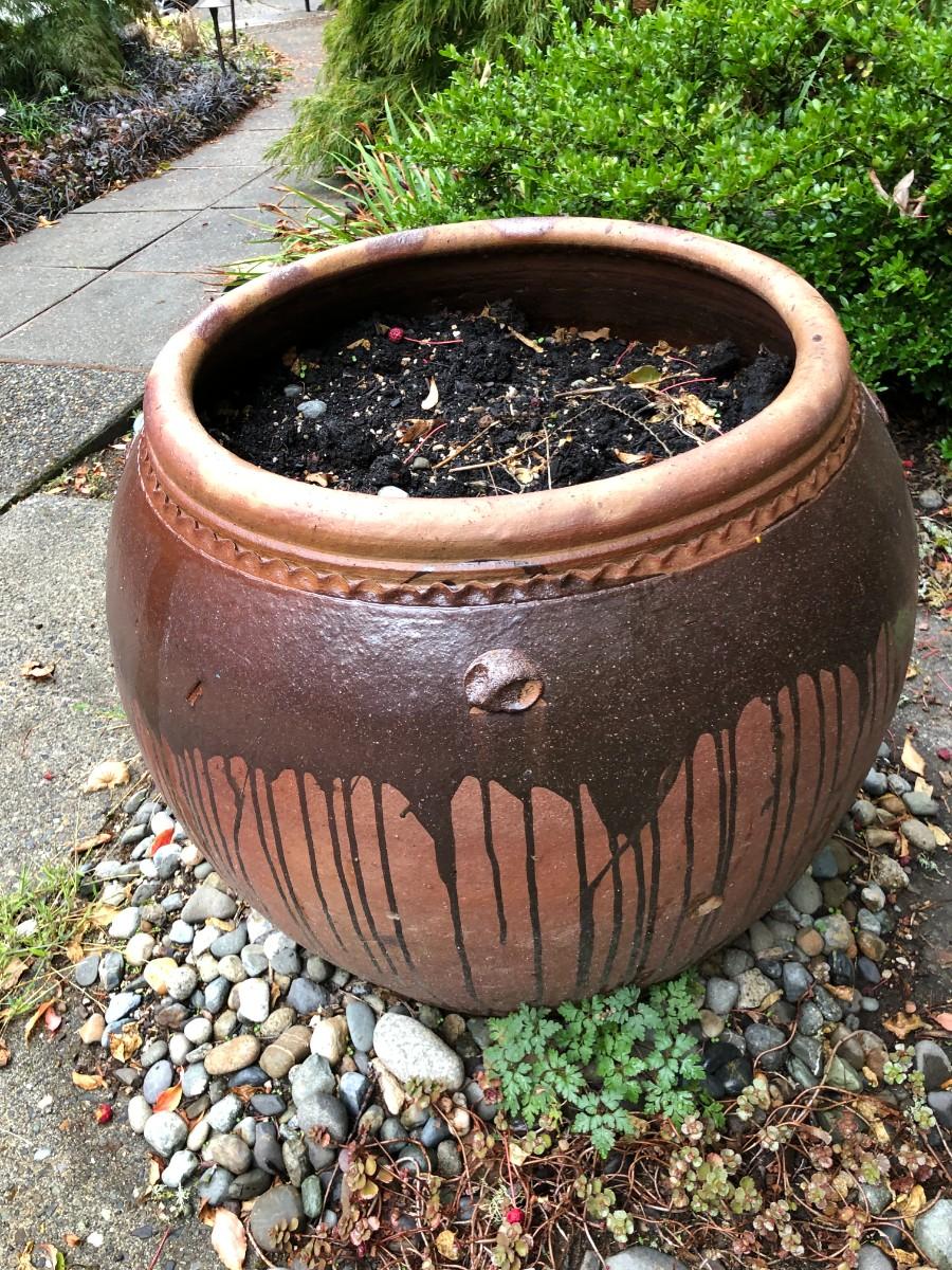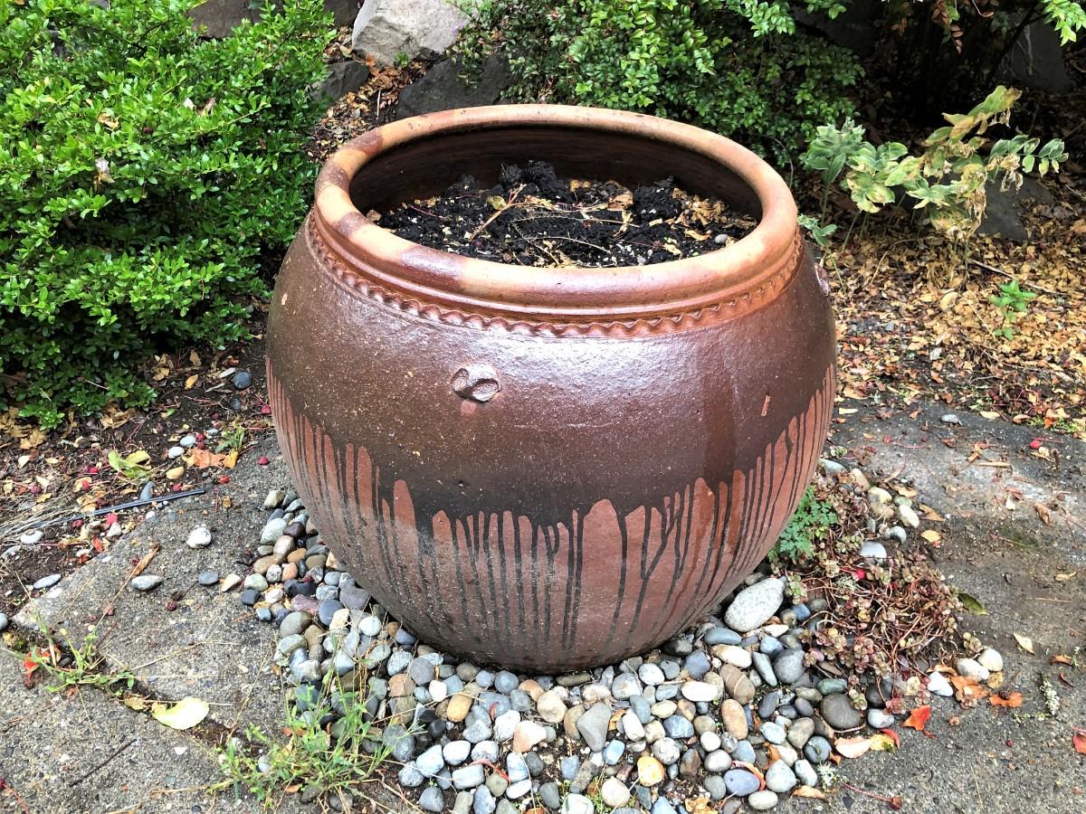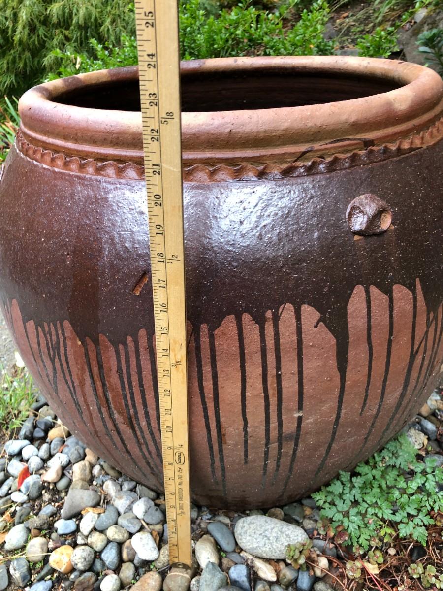 Extra Large Terra Cotta Brown Drip Glaze Garden Planter Pot. In very good condition.