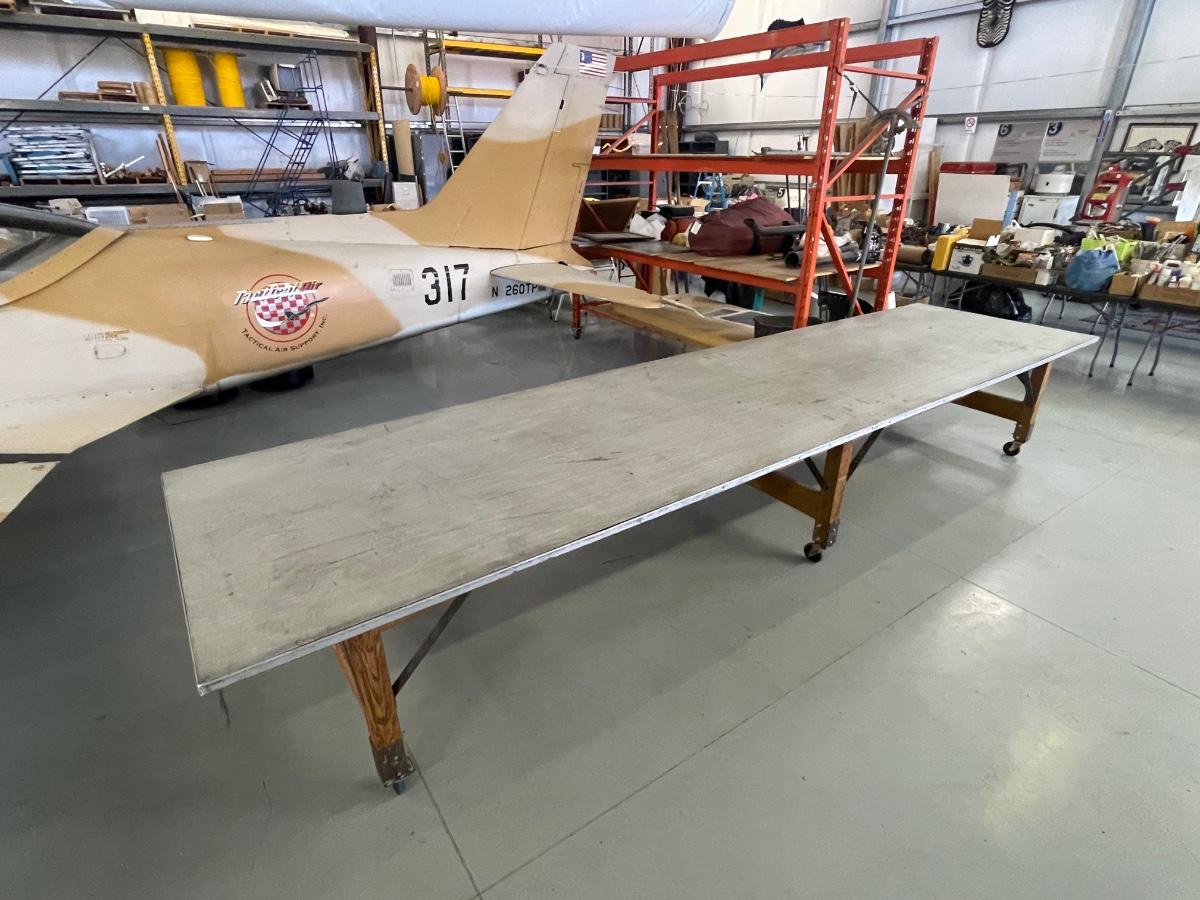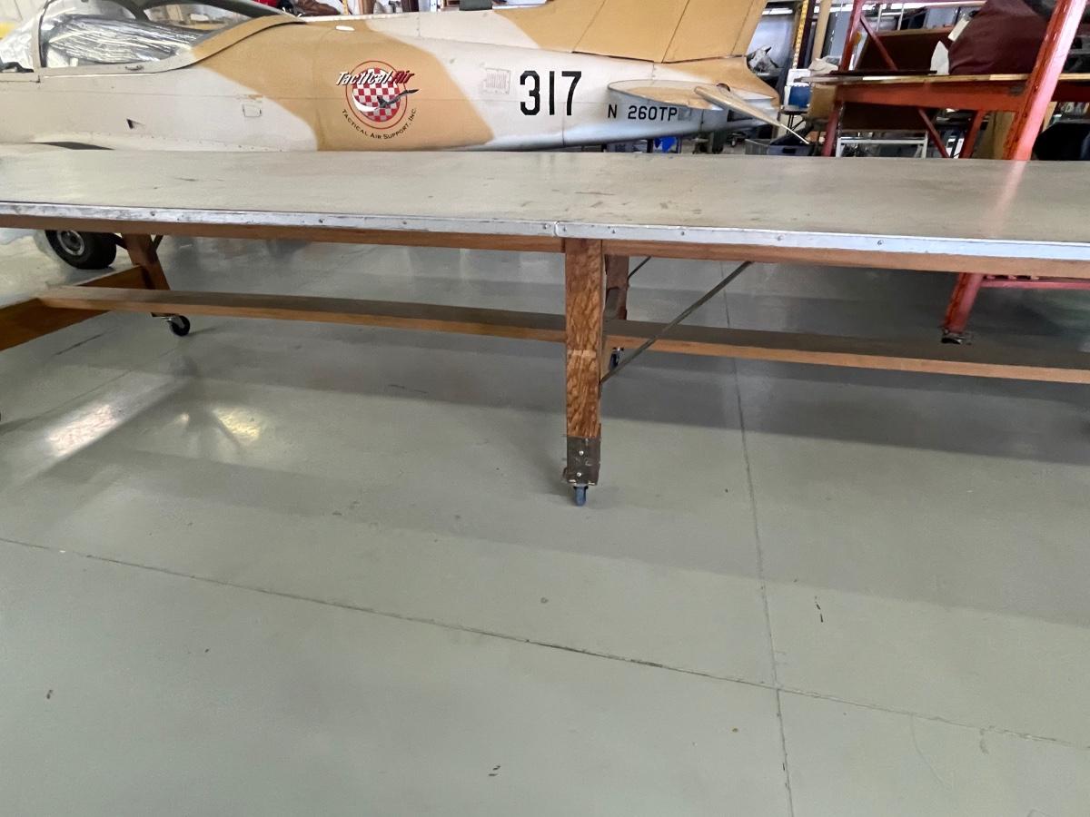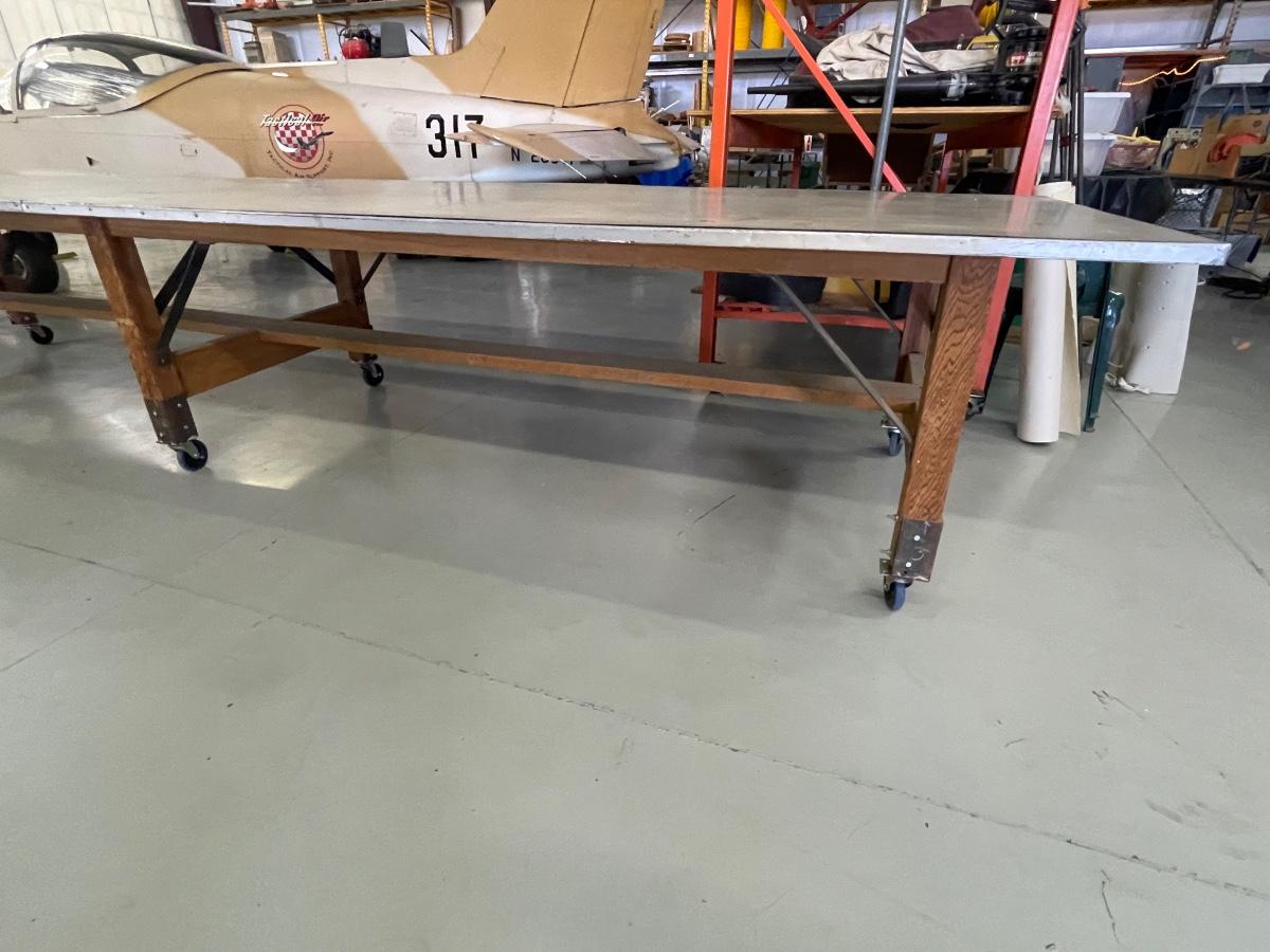 Extra Long Rolling Work Table w/laminate top on Wood Base - 16' L x 47" W  32"t