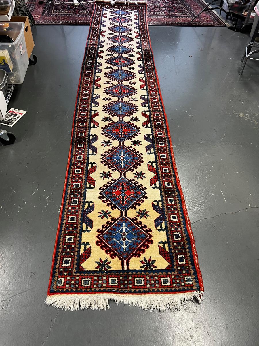 Extra Long Runner, Hand Woven Rug, Red White and Blue Colors.