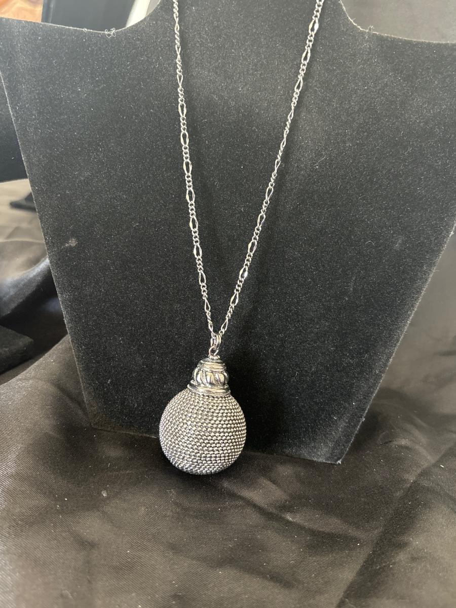 Extra long silver toned with big ball pendant