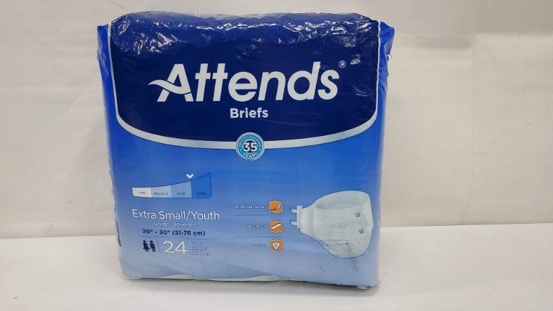 Extra Small/Youth Attends Briefs, 20"-30", 24 Briefs, Pkg Taped Close - New