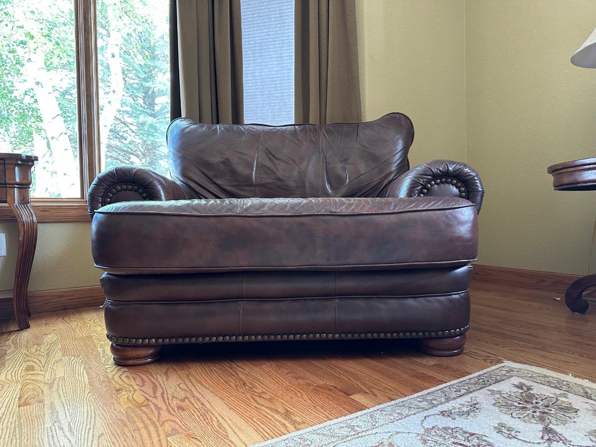 EXTRA WIDE LEATHER CHAIR WITH NAILHEAD ACCENTS BY LANE FURNITURE
