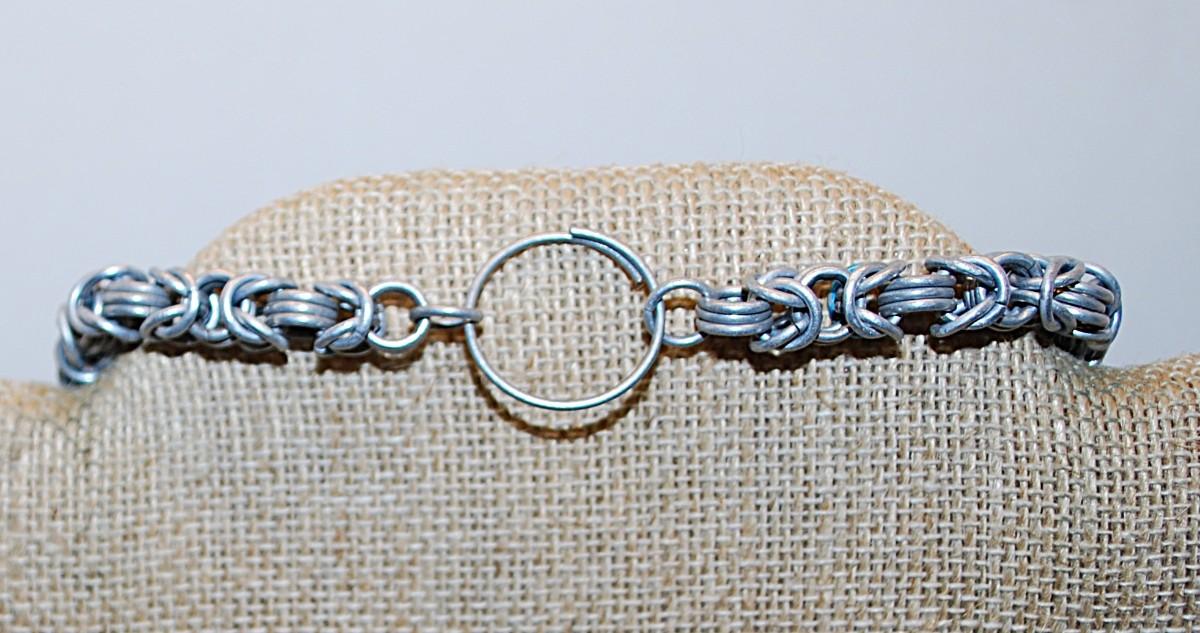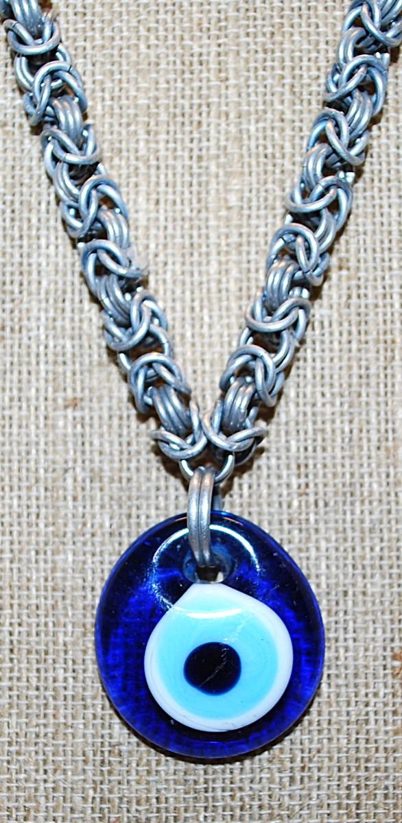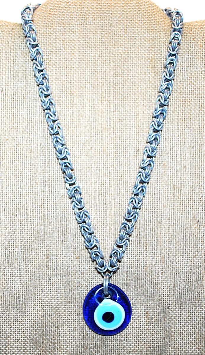 "EYEBALL" PENDANT (1" Diam.) NECKLACE with Interesting Silver Tone Looped Chain and Circle Clasp 21" L