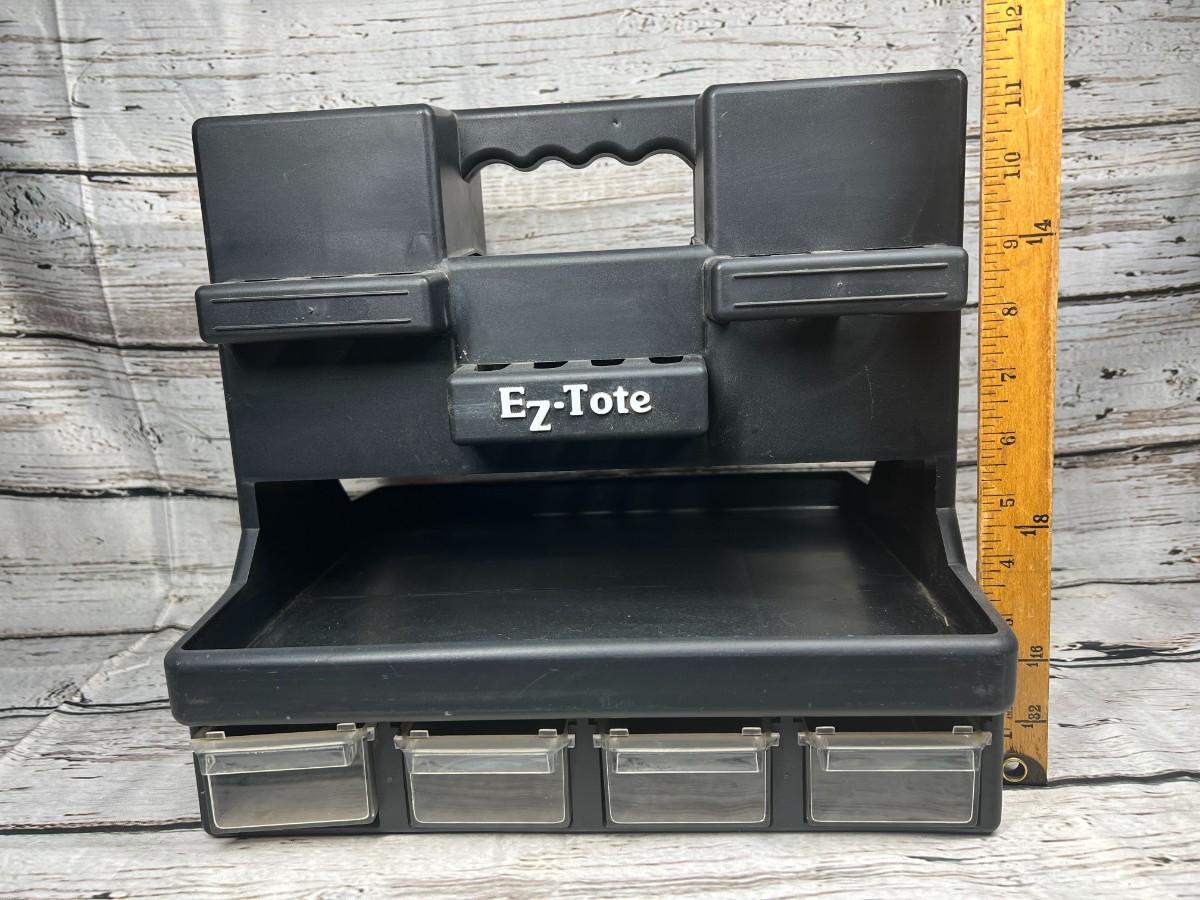 EZ Tote Plastic Handheld Tool Crafting Organizer, there is some light wear to the piece, but there is no significant damage and is in good useable condition. Check pictures for more details and for sizing.