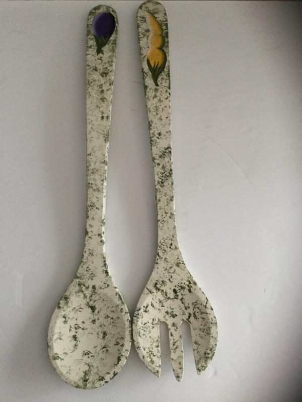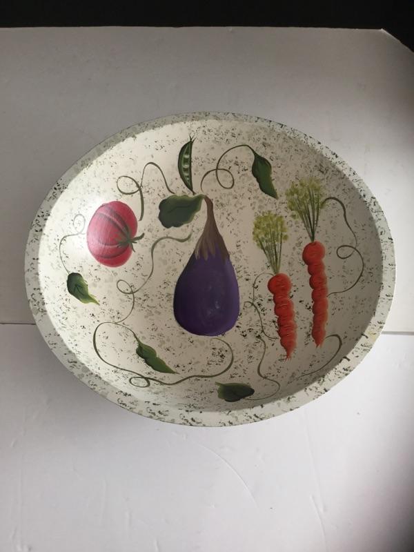 Trinity Designs Easton MD Hand Painted Salad Bowl with Utensils 14” R x 4.5”D