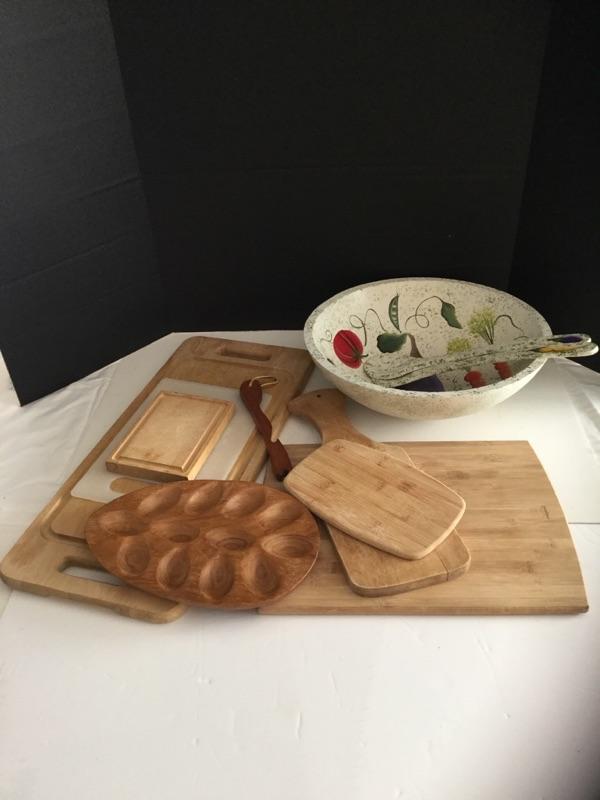 F - 1003. Wooden Cutting Boards & Wooden Serving Bowl