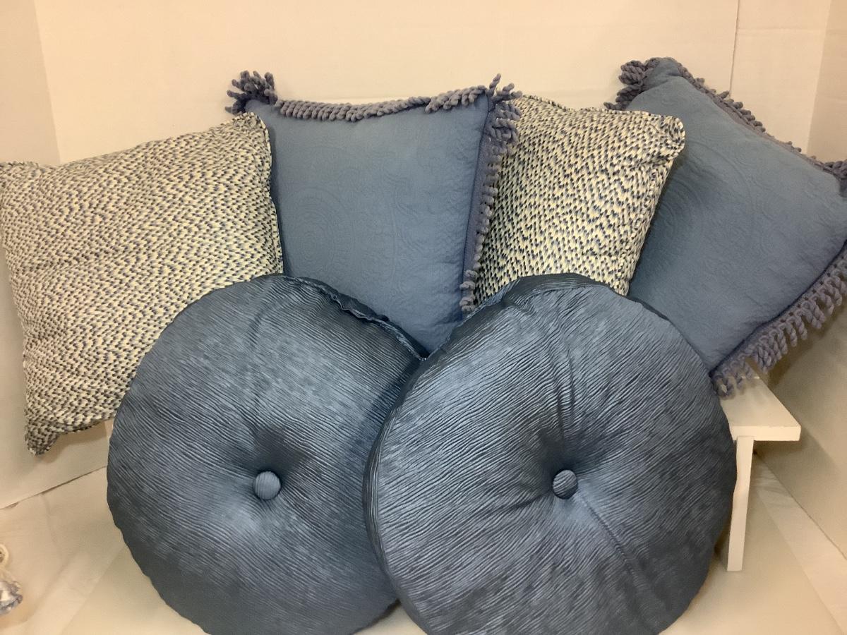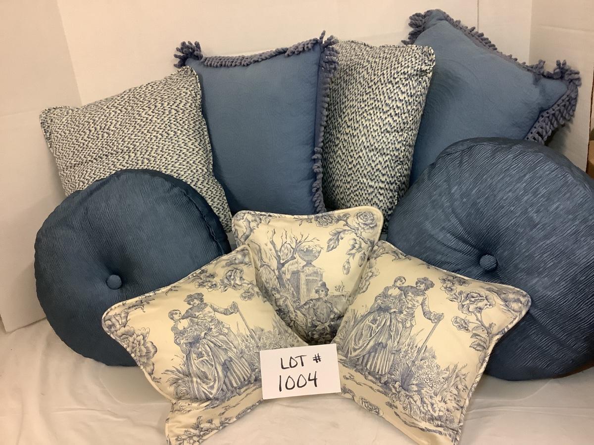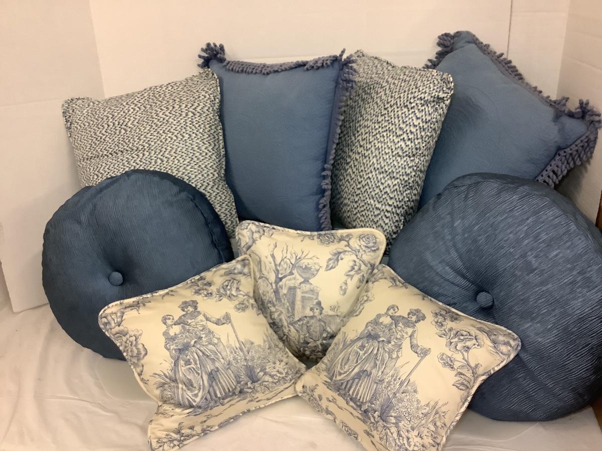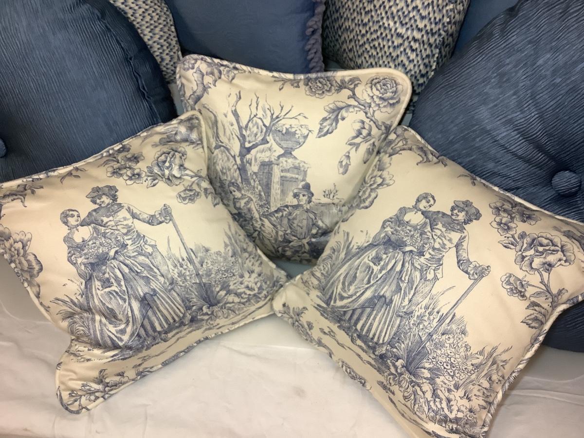 F - 1004 Lot of Blue/ White Decorative Pillows ( 3 Toile Throw Pillows )