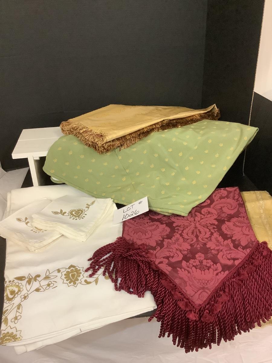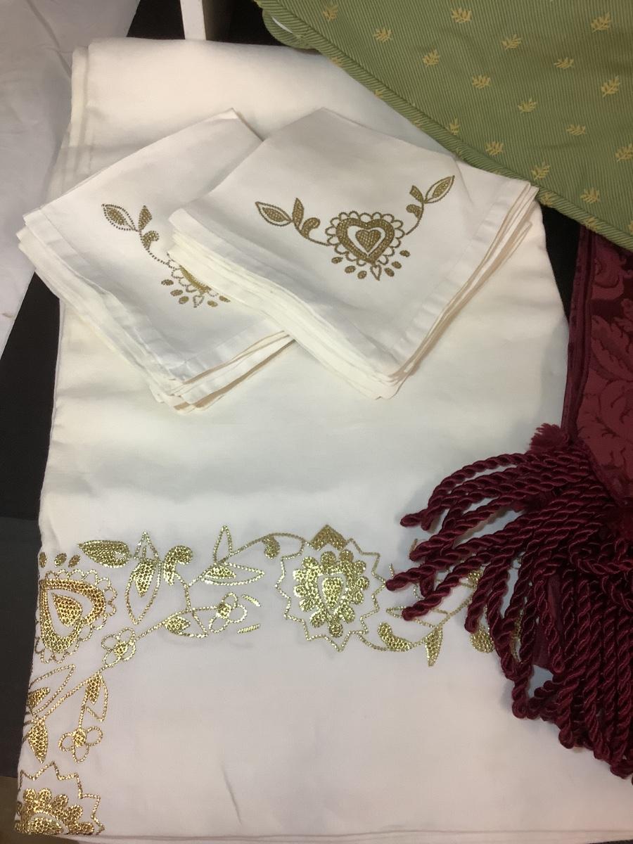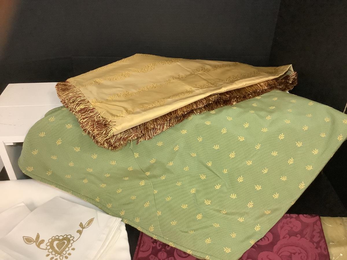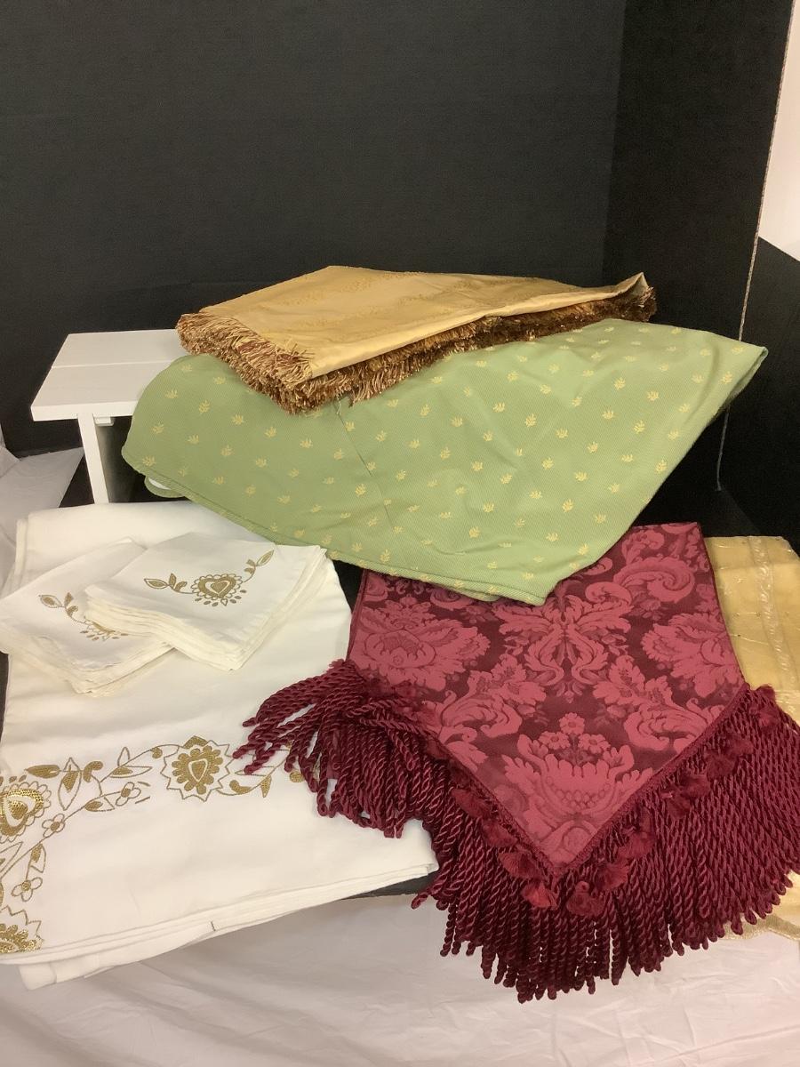 F - 1026  Custom Designed Table Covering ( green with gold ) & more
