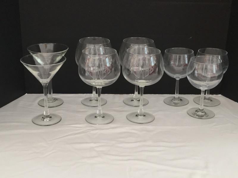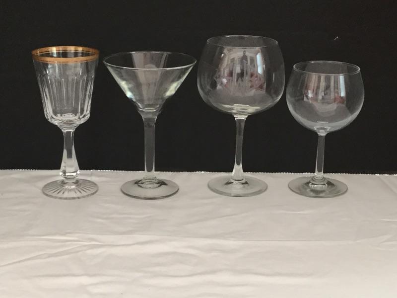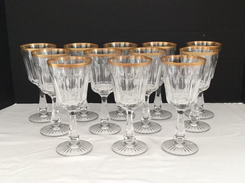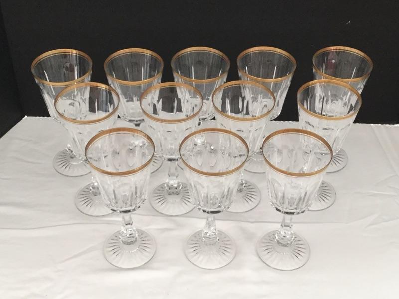 F 1026. Set of 12 Gold Rimmed Glasses and more