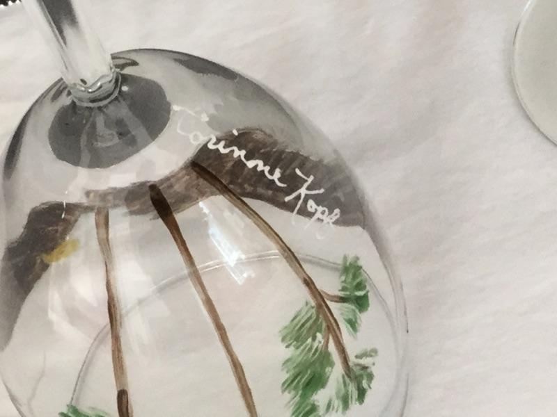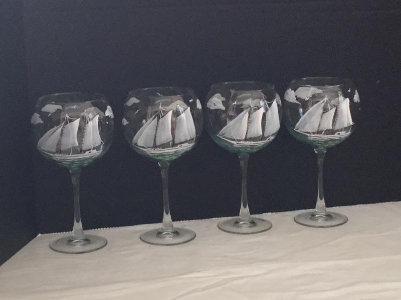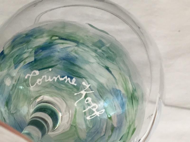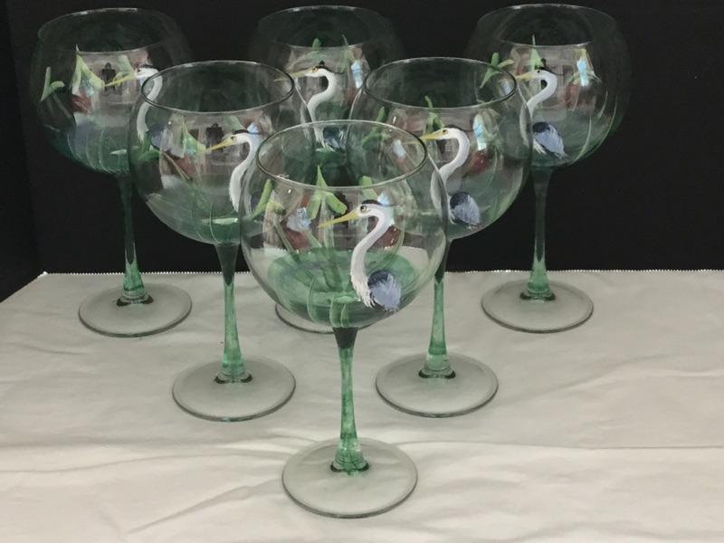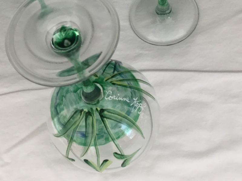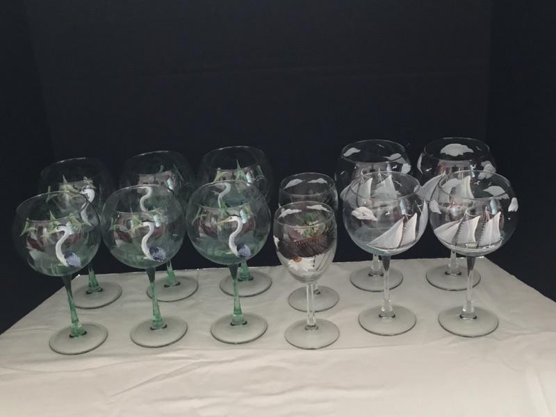 Set of 12 Hand painted Corinne Kopt Wine Glasses