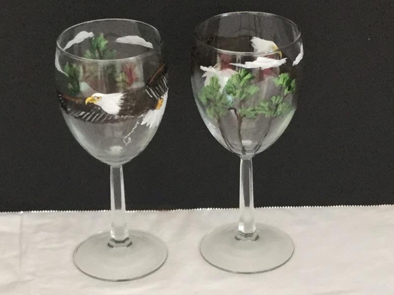 F - 1027  SIGNED - Handpainted Wine Glasses
