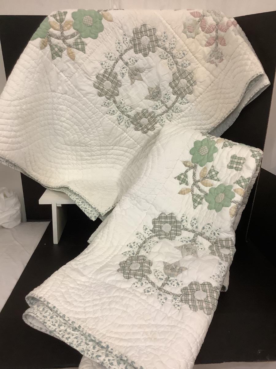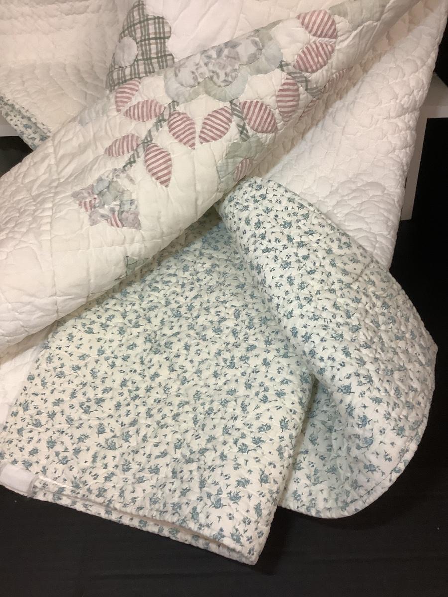 F - 1031 Pair of Reversible Twin Size Quilted Bedspreads