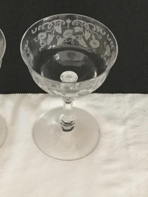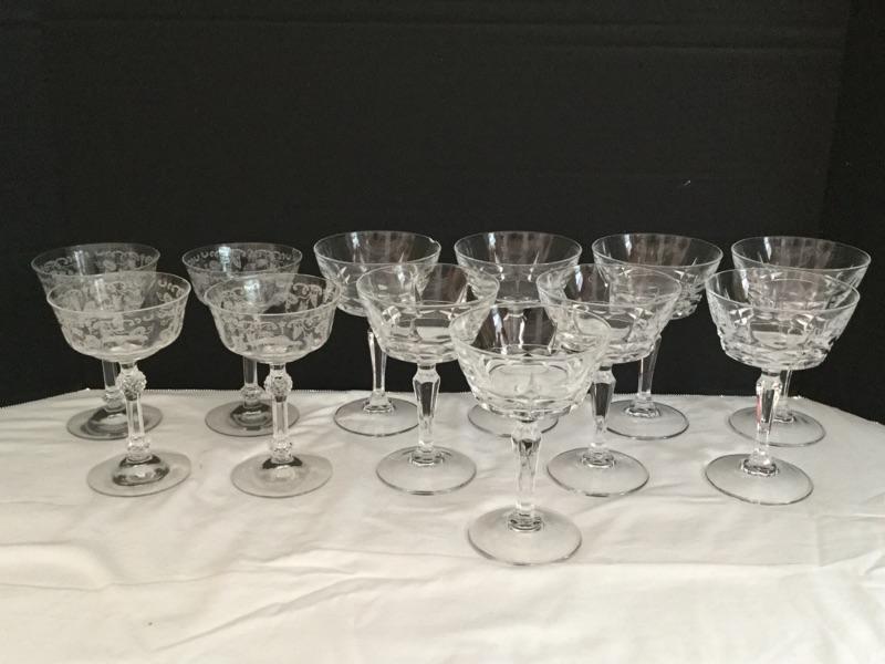12 Champagne Glasses ( 4 of the glasses are etched )