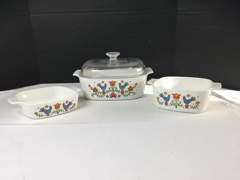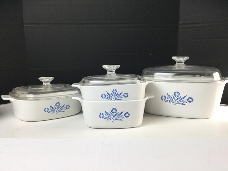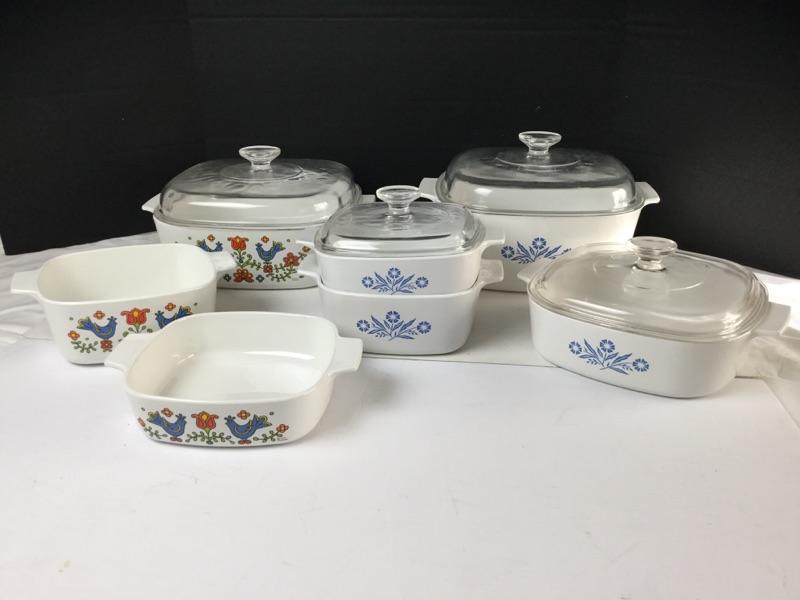 Lot of 7 CorningWare in various sizes, 4 Lids