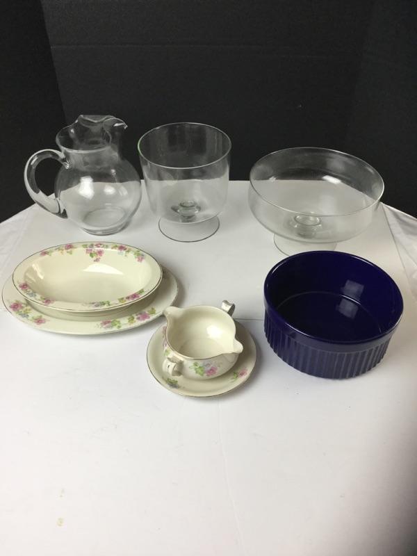 F - 1052 Glass and Porcelain Serving Pieces