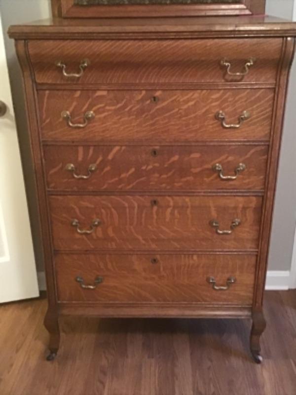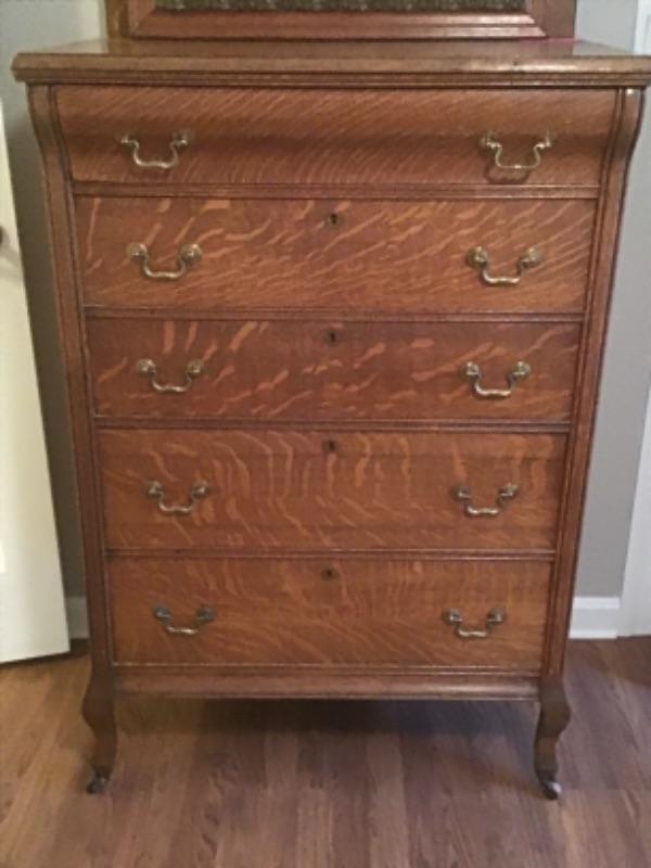 Antique Tiger Oak 5 Drawer Dresser with Backsplash -
