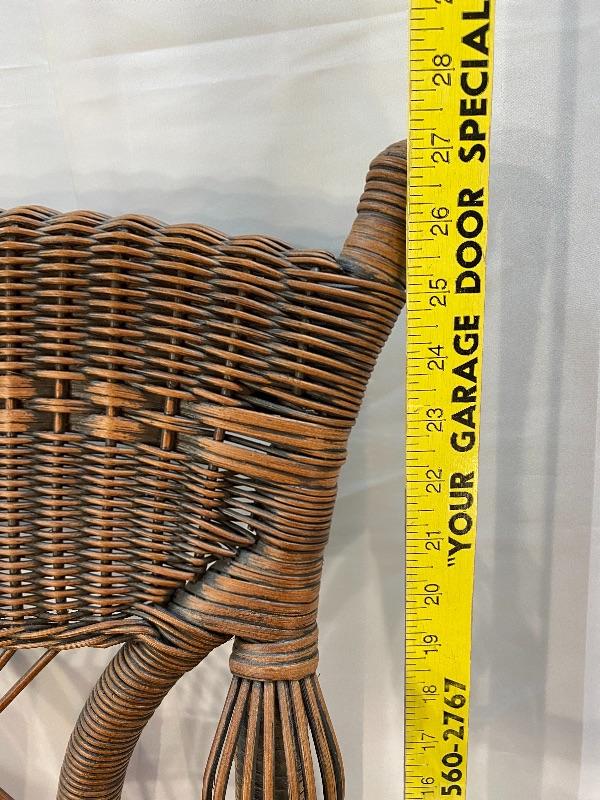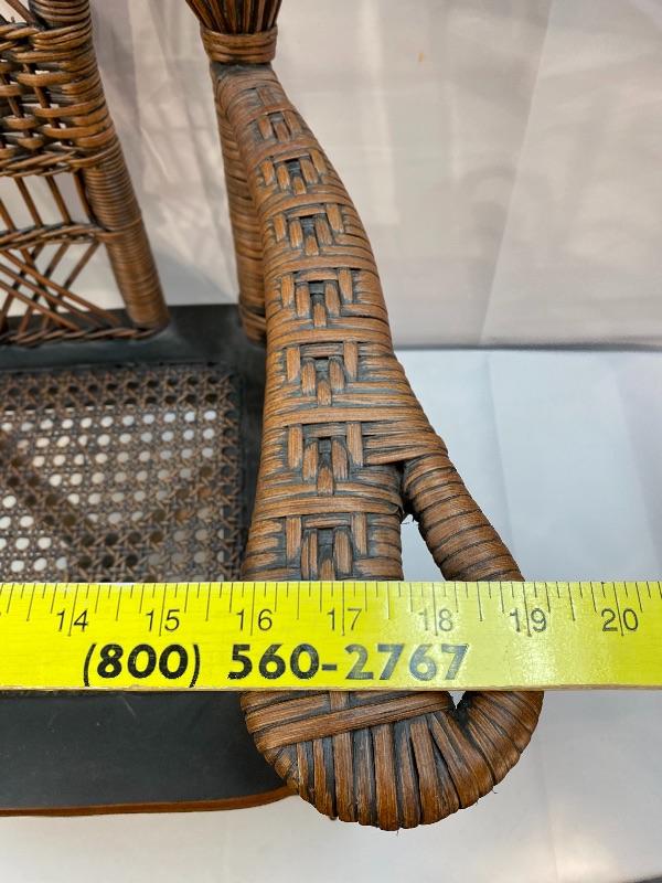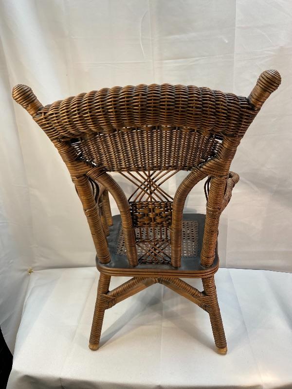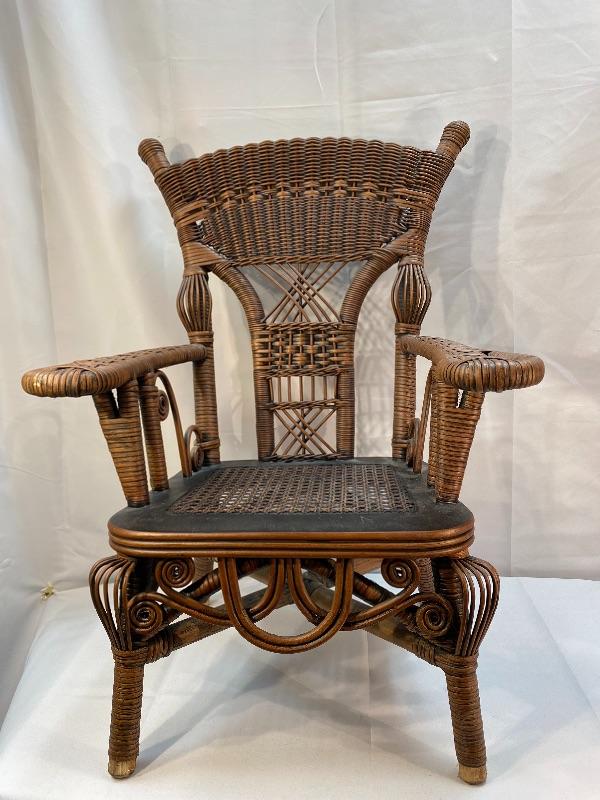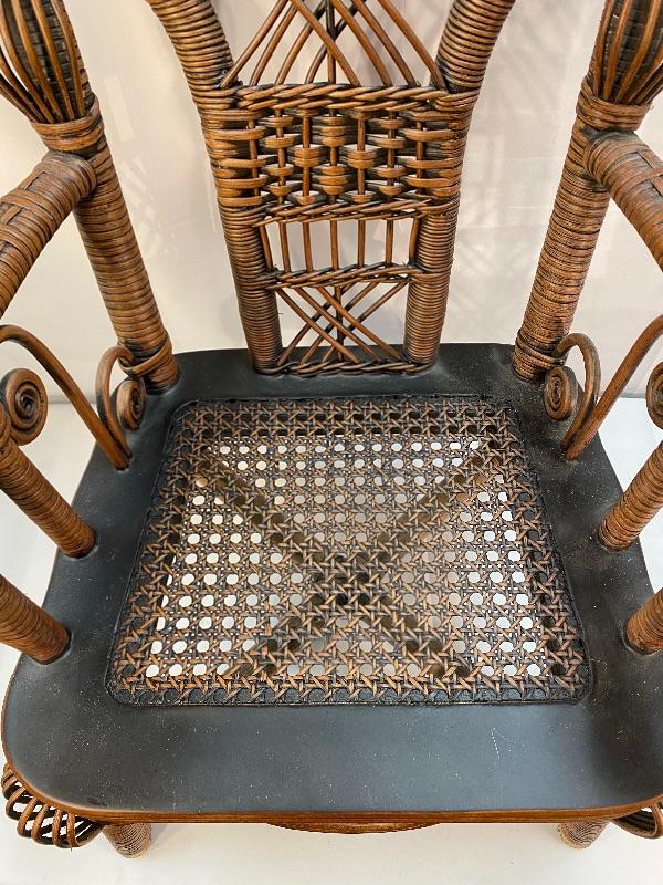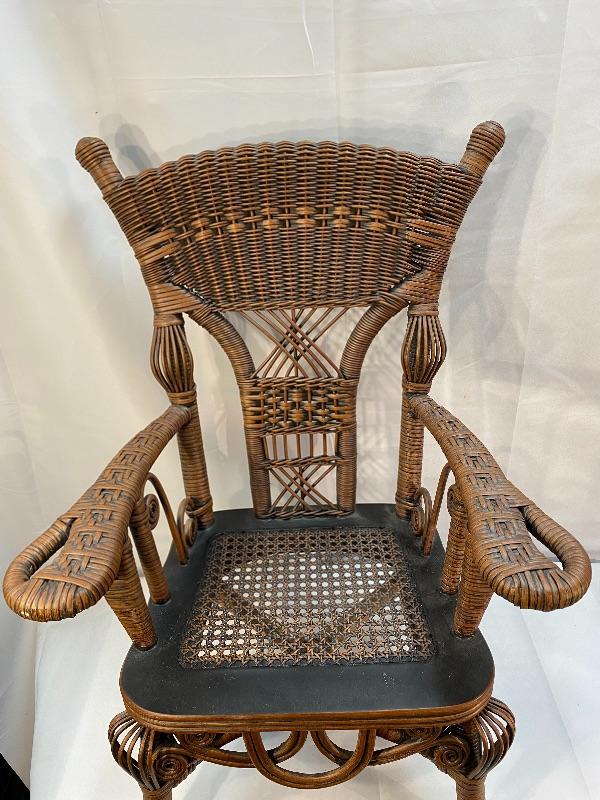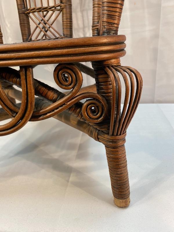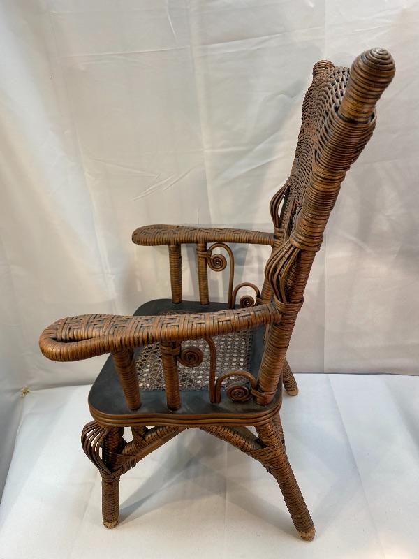 Vintage, possibly antique wicker rattan childs chair. Nicely done, a lot of details. Rattan seat. Very little wear. Good for display or small child.
